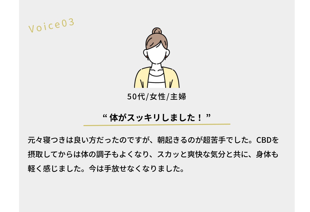 ※CBD摂取はご体調に合わせてご自身で量を決めてください。