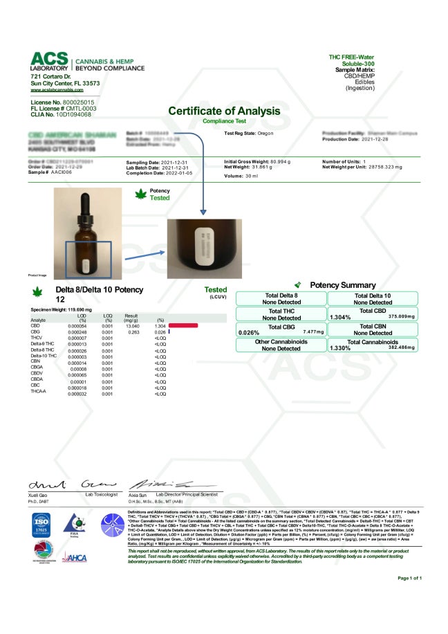 弊社のCBD水溶液はアメリカで最も精密な第3者機関からの証明も頂いています。
