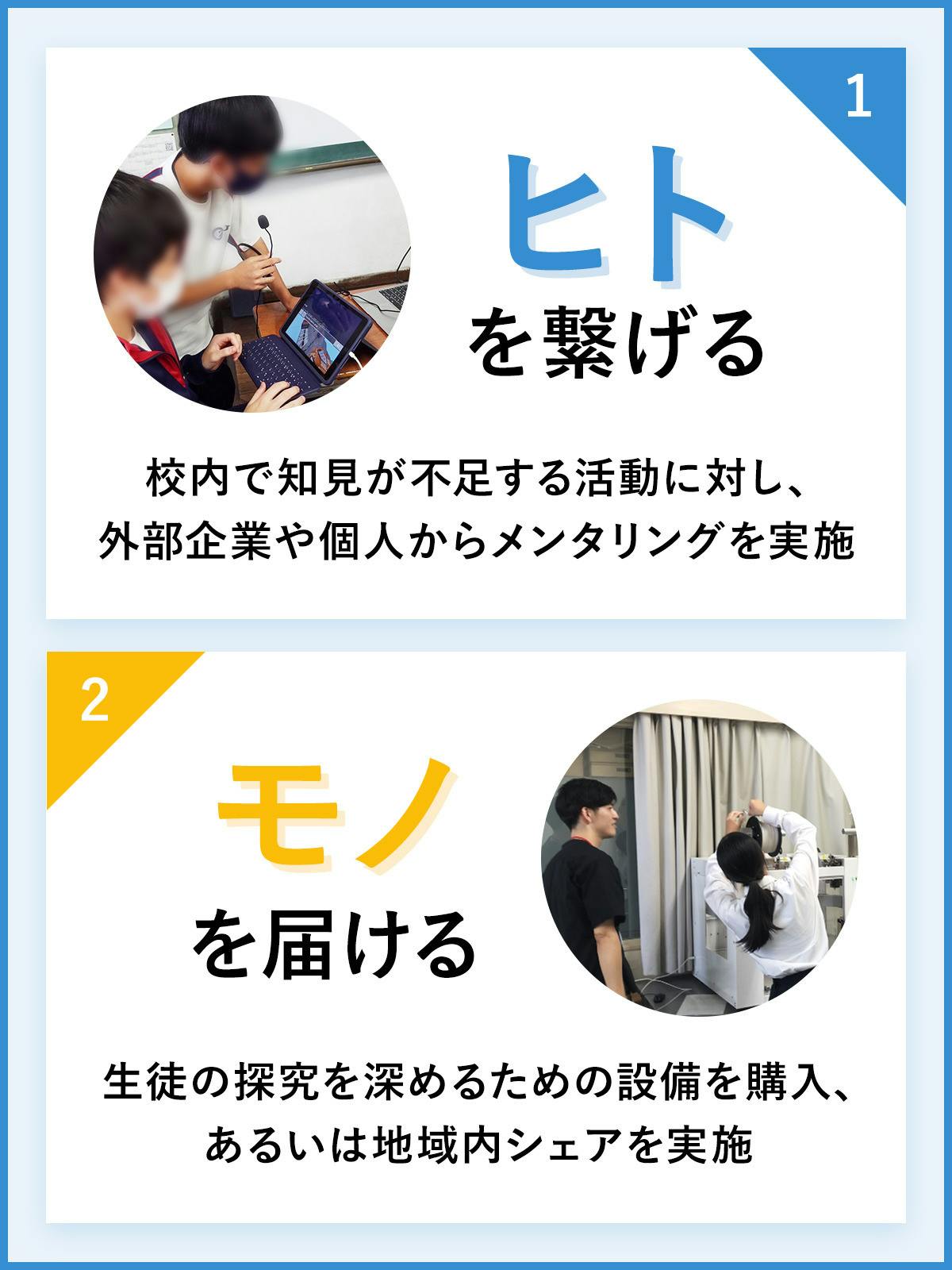 今回のクラウドファンディングでは、皆様からいただいた資金を基に、各学校への探究支援を行い、学習における価値を計測し効果検証を行います。