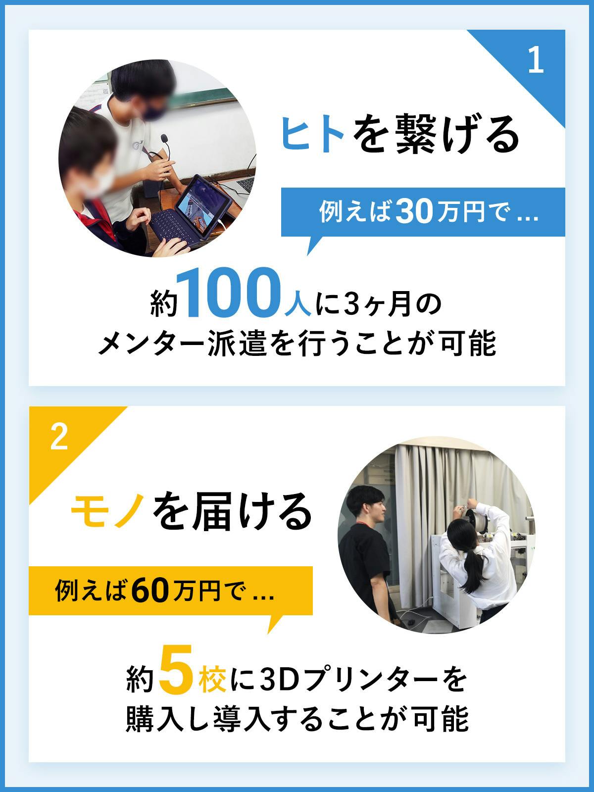 ※ご支援が目標設定金額を上回った場合は、上回った分のみ、一定割合を事業運営費(主に、探究支援を拡張するためのプラットフォームシステムの開発費)に充当する場合があります。その際は当ページに追記する形で明記します。
