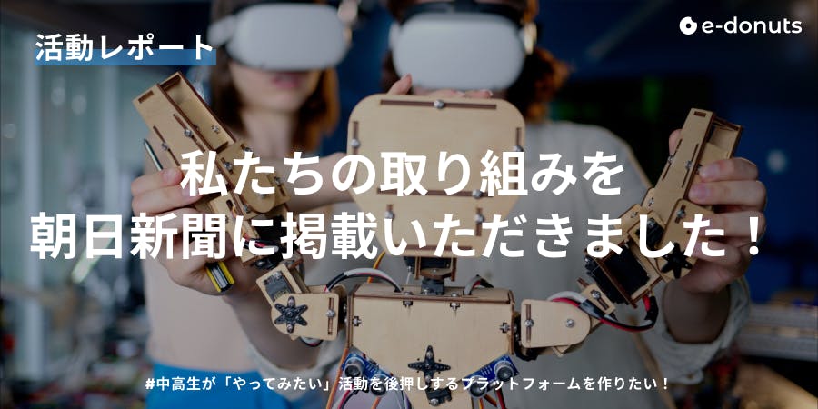 2023/10/27 15:17朝日新聞の10月24日朝刊に掲載いただきました!記事では、立ち上げの経緯やこれまでの活動に加えて、クラファンについても触れていただいています。紙面の様子(※共有は許諾済)これを機に地域の方に探究学習のことをもっと知ってもらい、少しでも子どもたちと地域の繋がりが増えたらいいなと思っています。デジタル版はこちらー私たちのプロジェクトについてー#中高生が「やってみたい」活動を後押しするプラットフォームを作りたい!近年脚光を浴びている、生徒自らがテーマを設定し取り組む探究学習。一方で、多くの学校では、生徒の「やってみたい」に応えるための知見やリソースが不足しています。この課題解決のため、私たちe-donutsは、中高生の「やってみたい」を後押しする探究応援プラットフォームを構築します。中高生の挑戦を背中押しするため、是非応援&拡散をお願いします!プロジェクトはこちら もっと見る