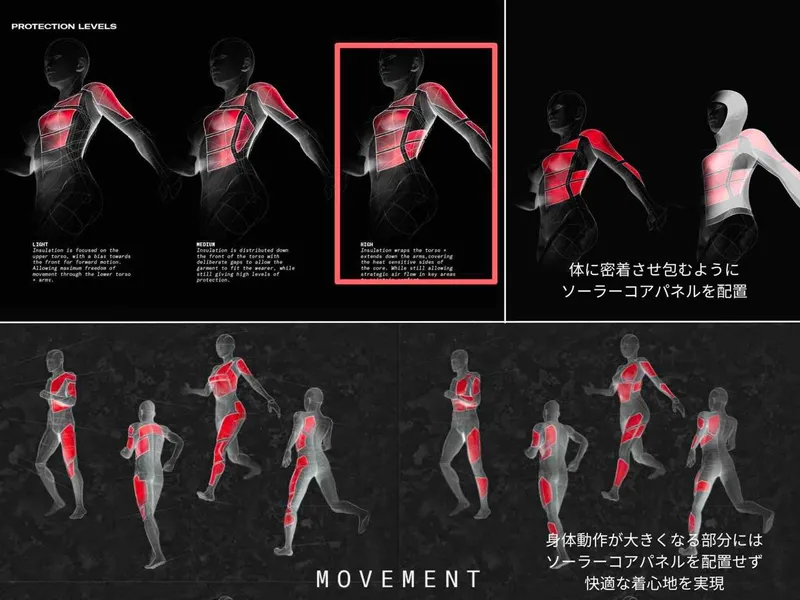 高度なボディマッピングにより、熱に敏感な部分や汗をかきやすい箇所を特定、ソーラーコアの配置を微調整します。