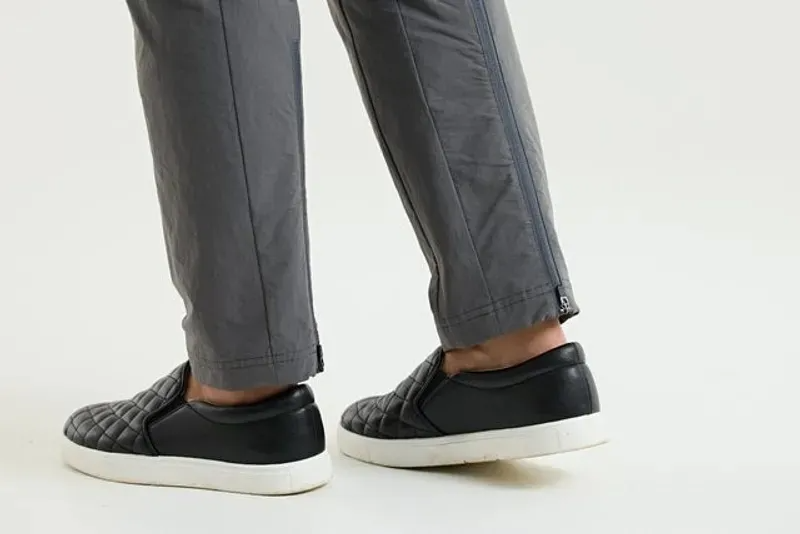杢調グレーのデザインとなっておりタイトすぎないテーパードシルエットで心地よい履き心地を提供します。
