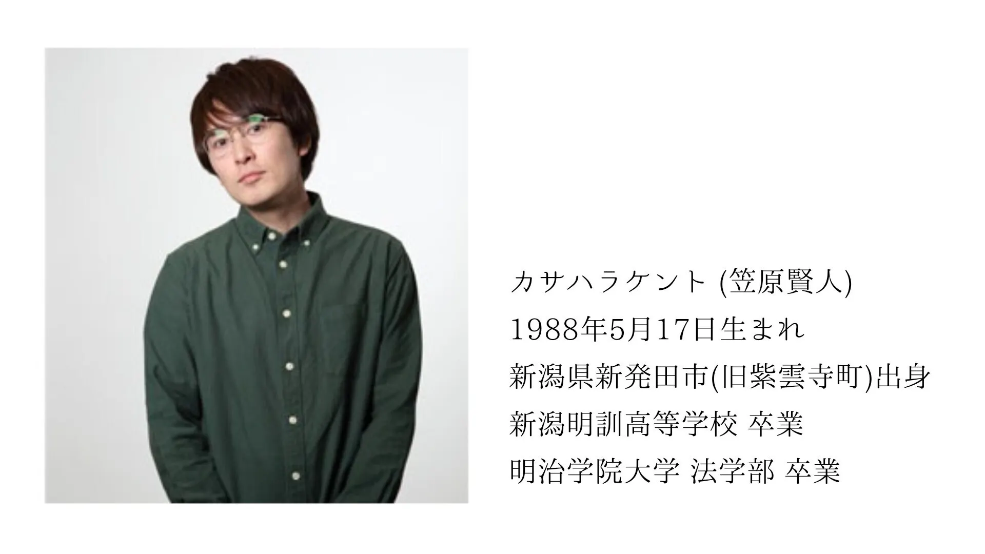 新潟県新発田市(しばた市)出身、役者・クリエイター活動をしてます、カサハラケントです!