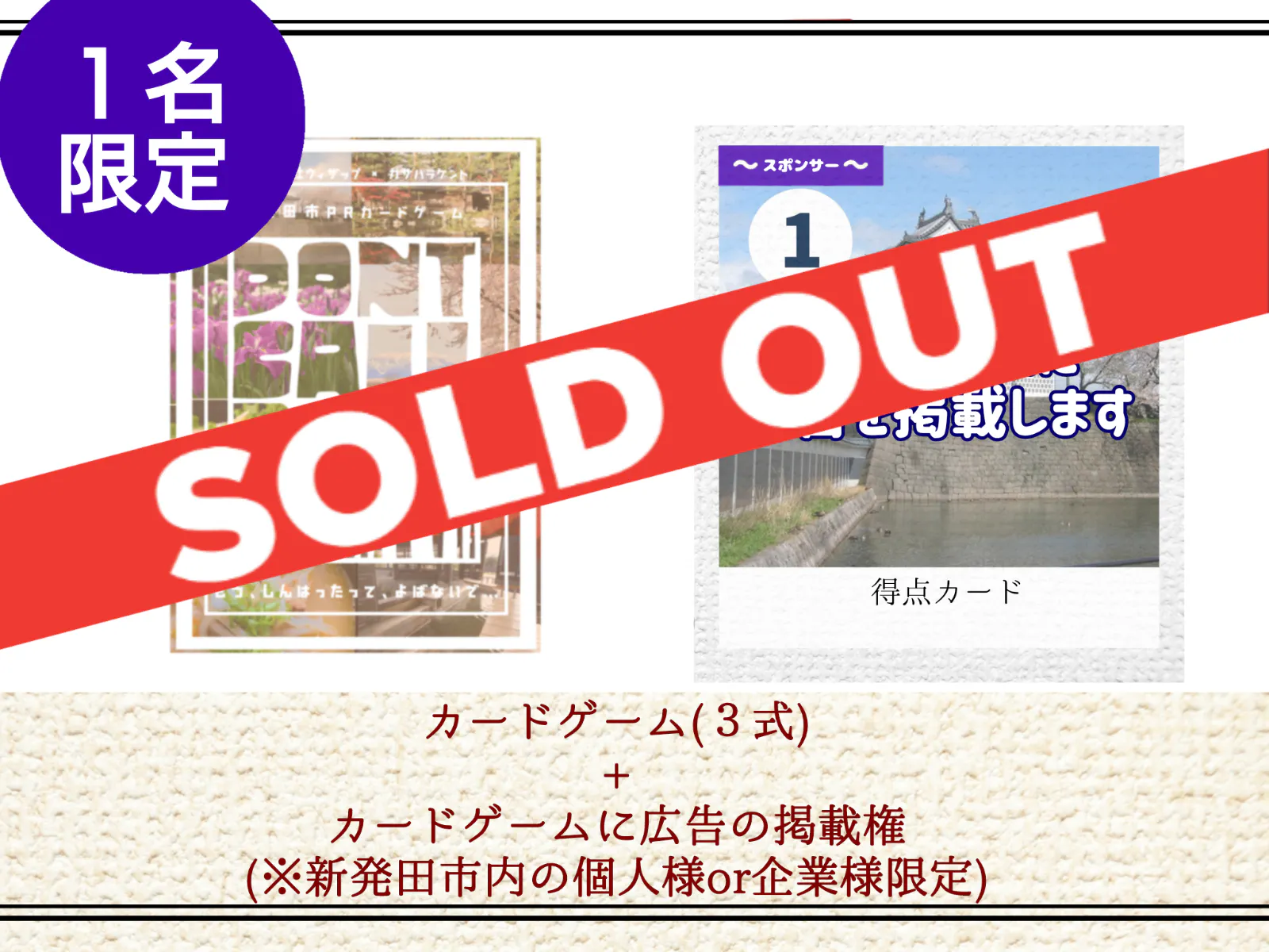 ☆1名限定!カードゲームに広告の掲載権付プラン☆(※新発田市内の個人or企業限定)