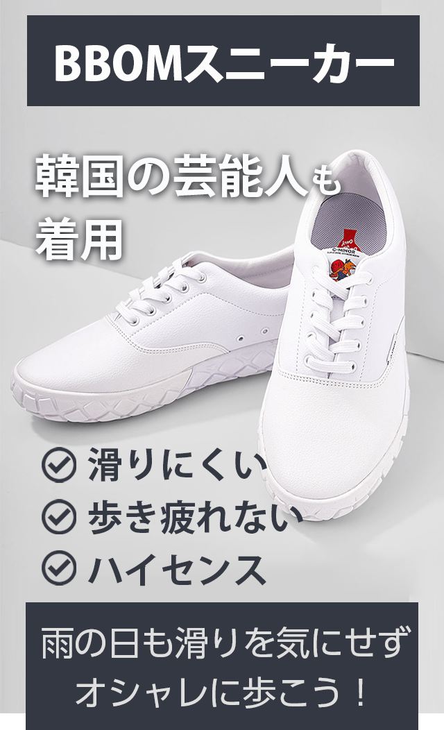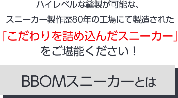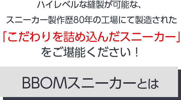 BBOMスニーカーはスニーカー製作歴80年を誇る韓国の工場にて作られた、まさに職人技が光る逸品。