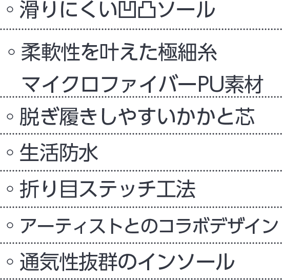 柔軟性と軽さを叶える「マイクロファイバーPU素材」を使用しています。