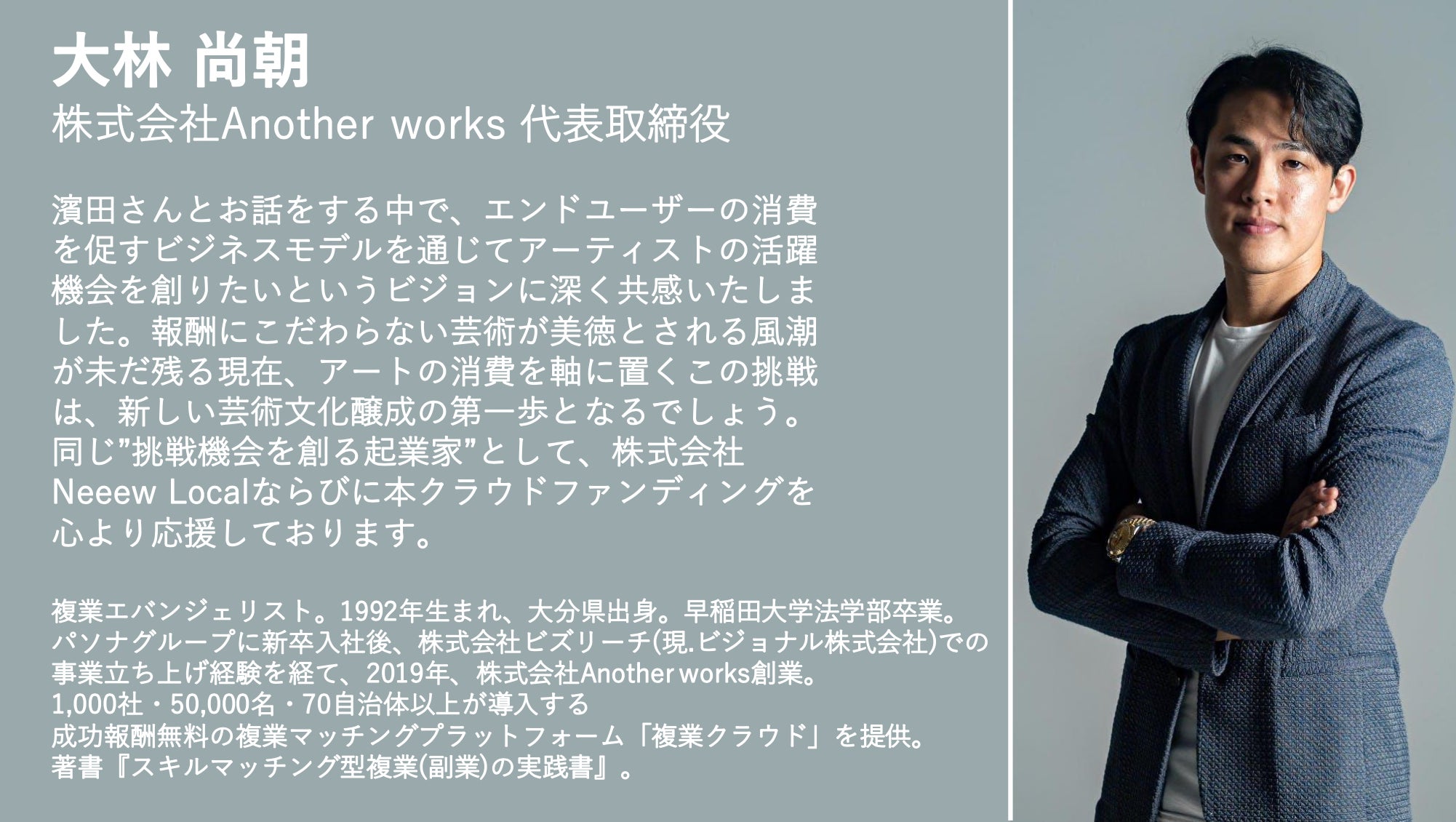 現時点では、このような特徴のある事業展開や成果を出していますが、このNeeew Localらしさを更に発揮し、「アート×異業種で、”好き”と出会える社会」を実現していきます。