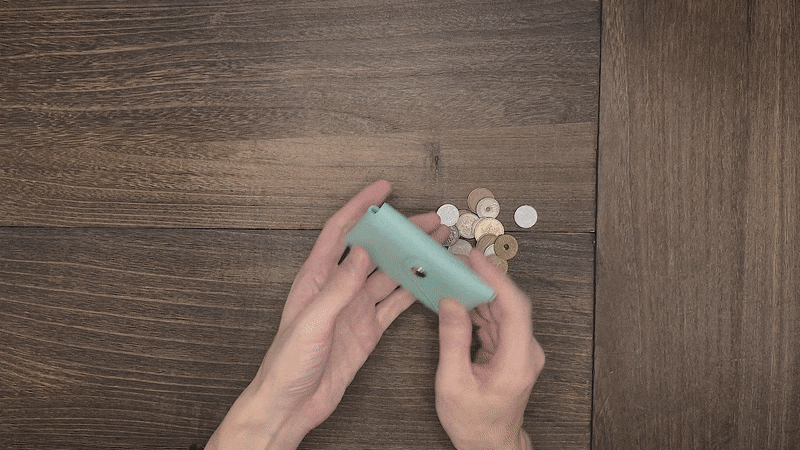 コインを利用せずカードケースとしてお使いいただく場合の容量は、プラスチックカードだと10~12枚。名刺ケースとしてご利用の場合は20~25枚ご利用いただけます。