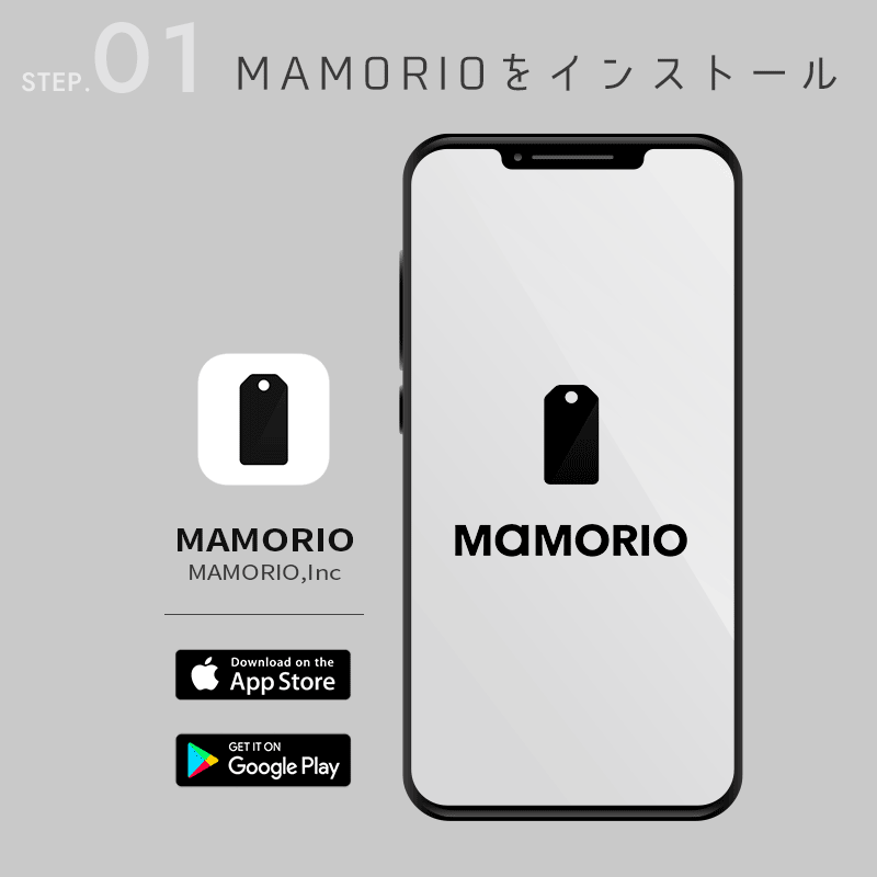 ①無料の専用アプリ「MAMORIO」をインストール