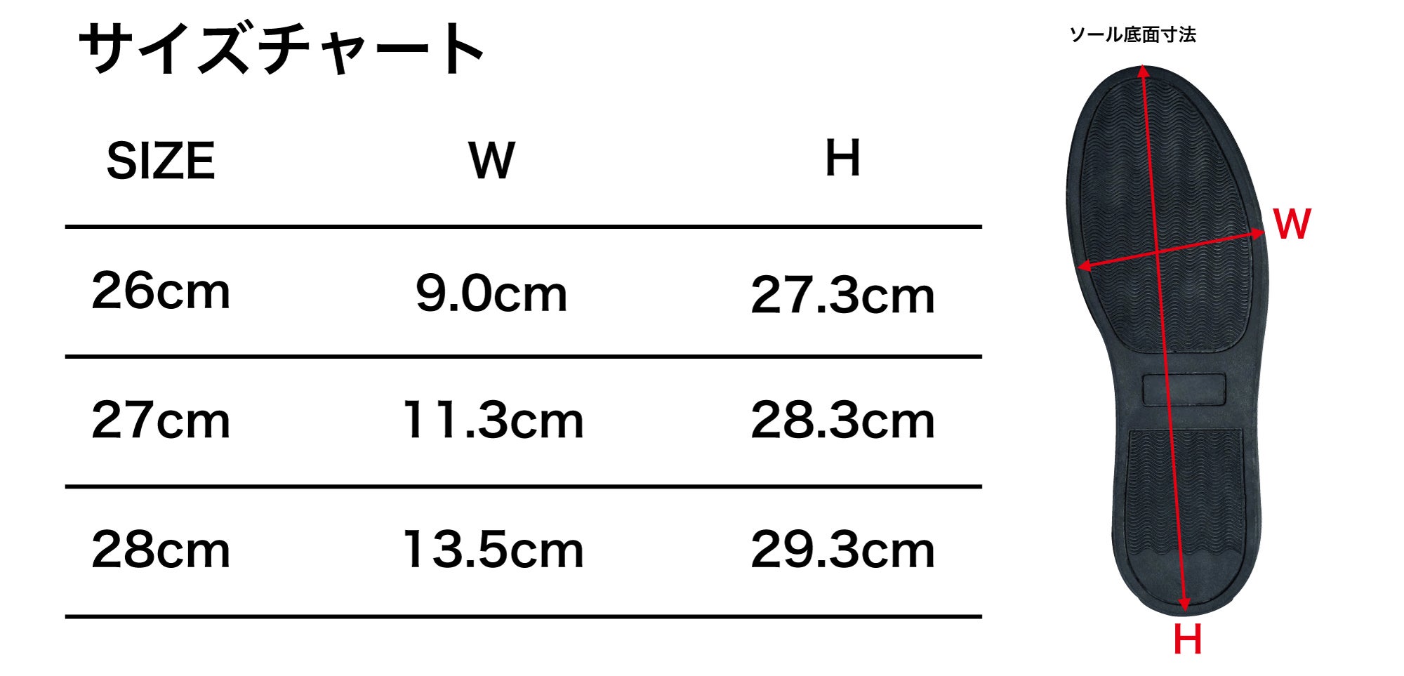 ※以下は靴底の寸法になります。お持ちの靴と比較してみてください。