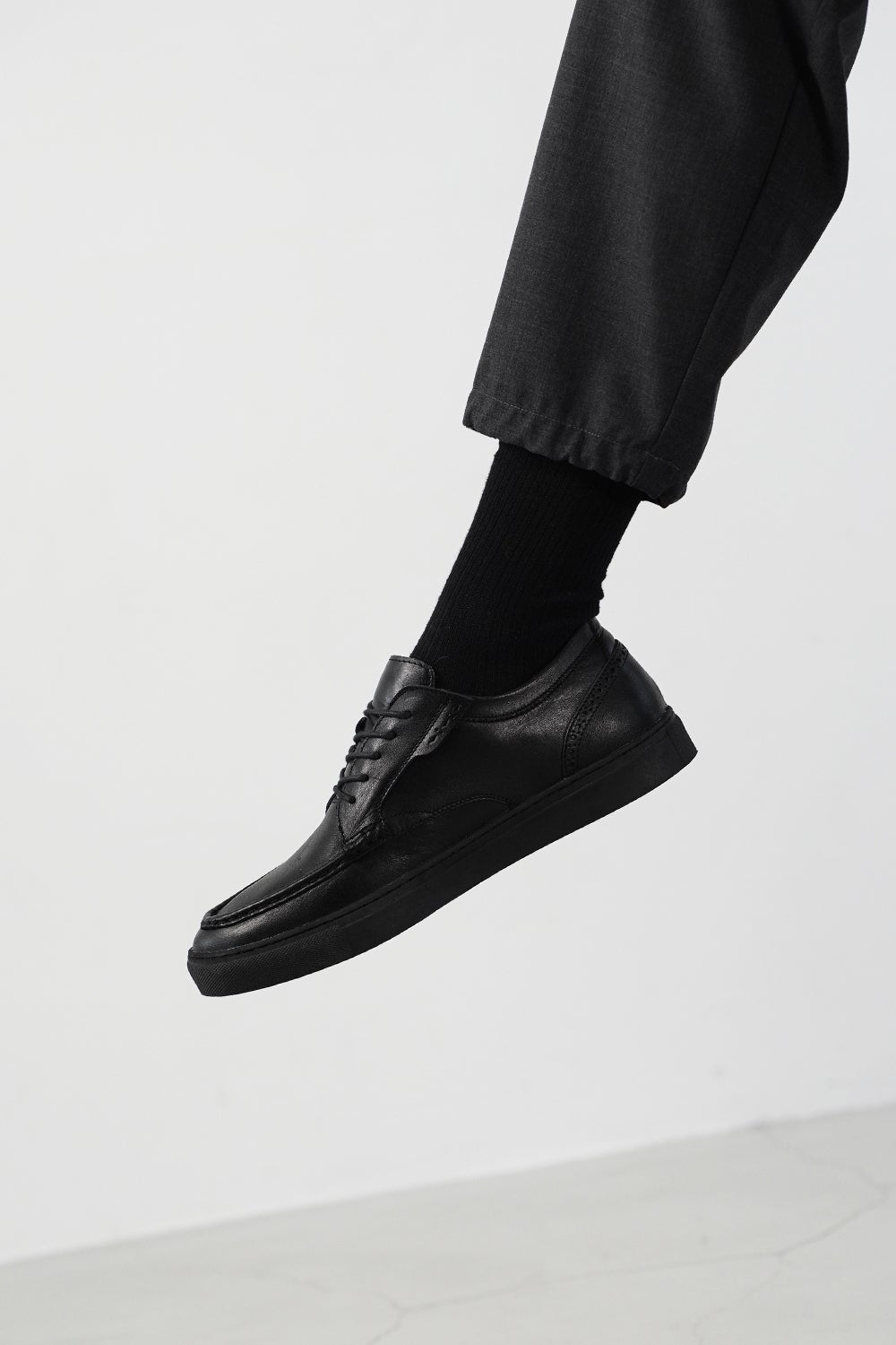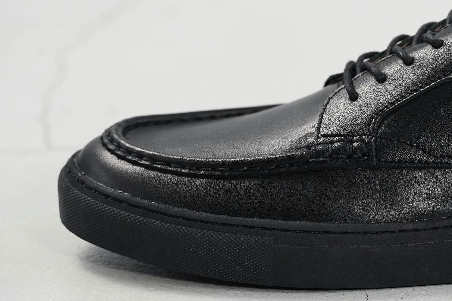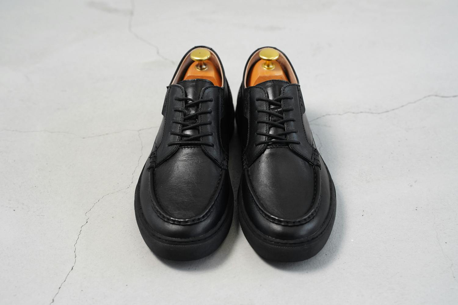 「こういう革靴とスニーカーを混ぜたようなデザインって大抵安っぽいんだけど、縫製もカッティングも丁寧だし、何よりデザインが肩肘張ってなくて気負わず履けそう!」