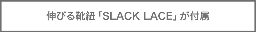 SLACK FOOTWEARユーザーにはおなじみの伸びる靴紐「SLACK LACE」が付属します。お好みで伸びる靴紐仕様に変えれば、このように「秒で脱ぎ履き」できます。