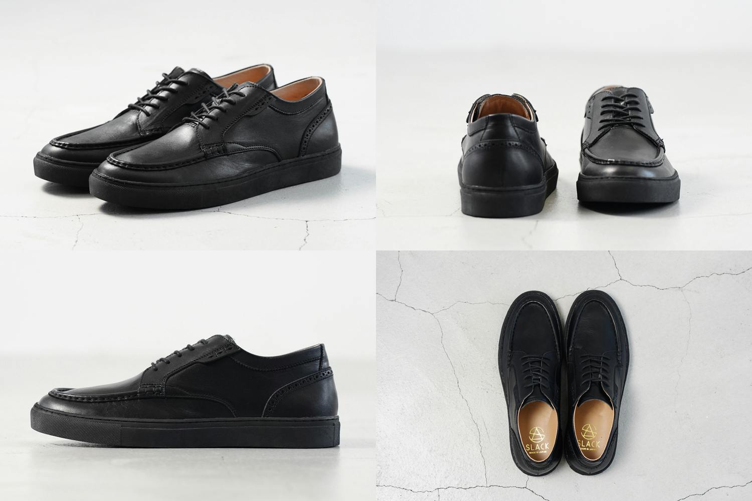 SLACK FOOTWEARデザイナーのYASUDAが提案する革靴でもスニーカーでもない新しいジャンルを体現しています。ただデザインとデザインを合わせただけではなく、二つの機能美を掛け算したデザインを見事にまとめあげています。