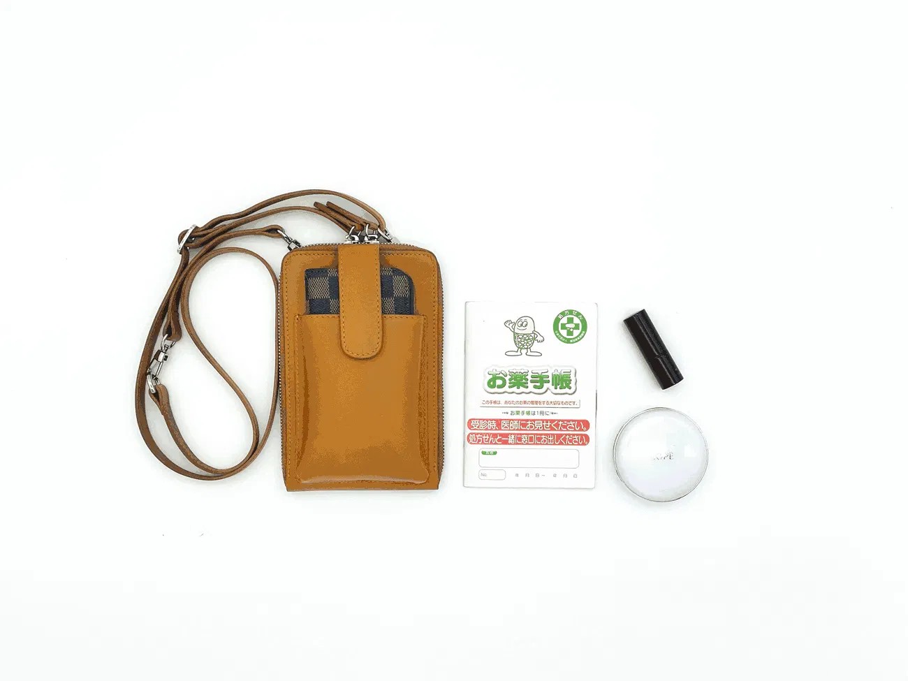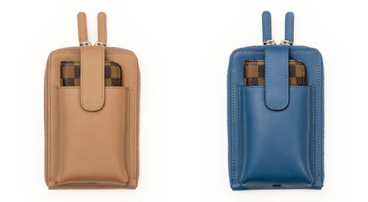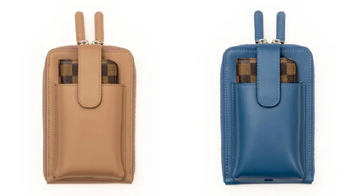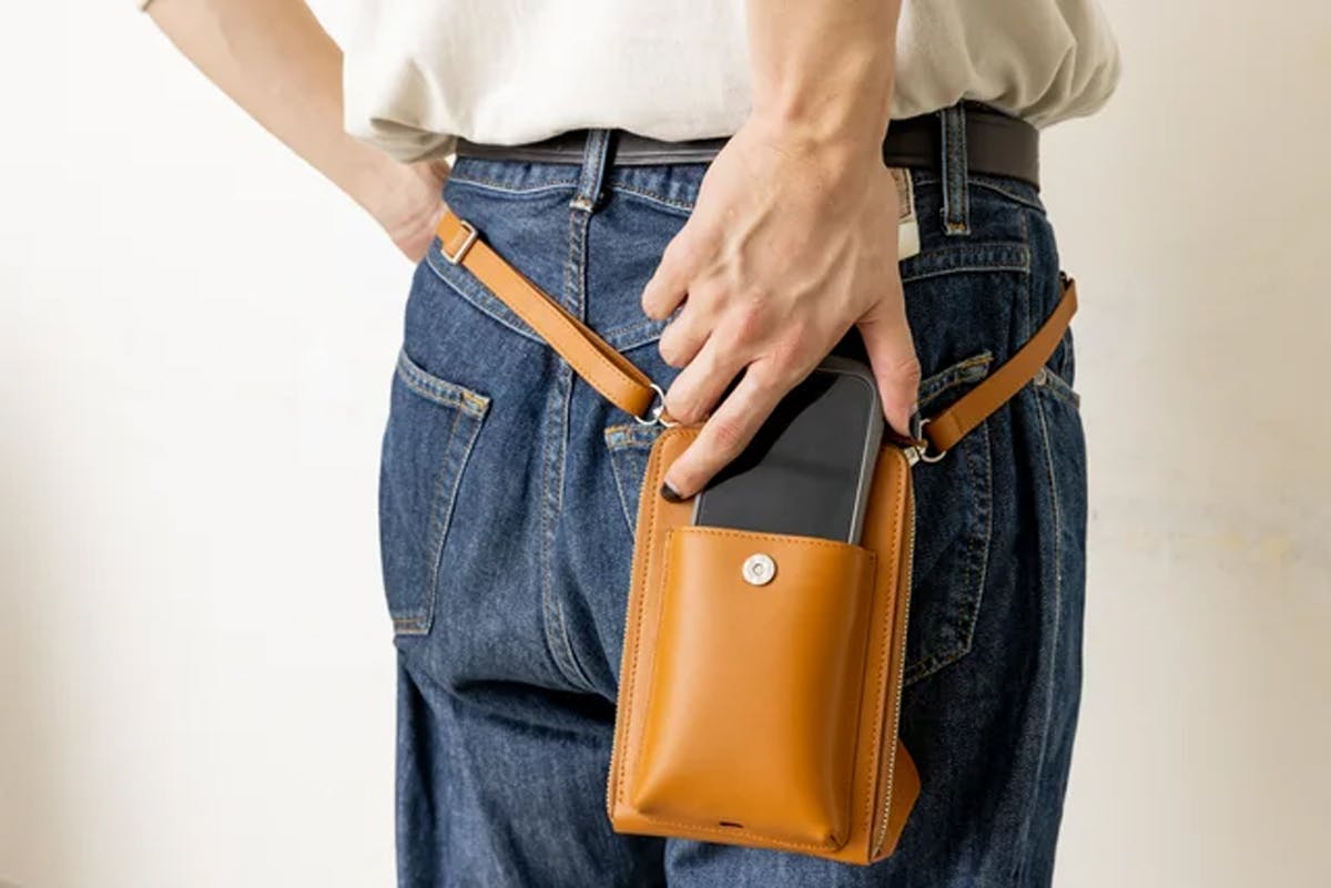 それに加え、使われている方が多い手帳型のスマホケースも入るようにサイズの調整をいたしました。