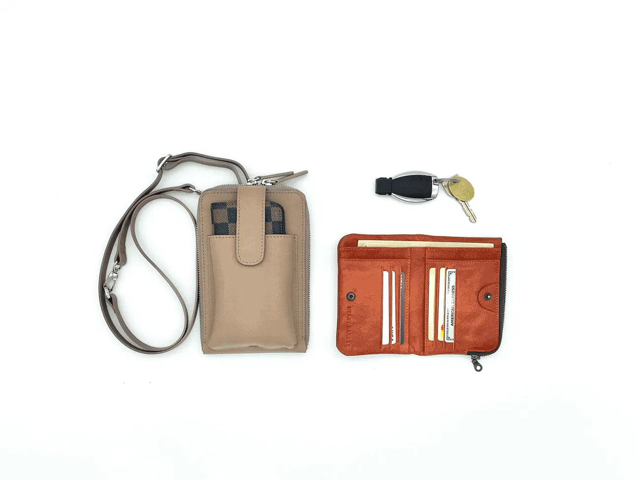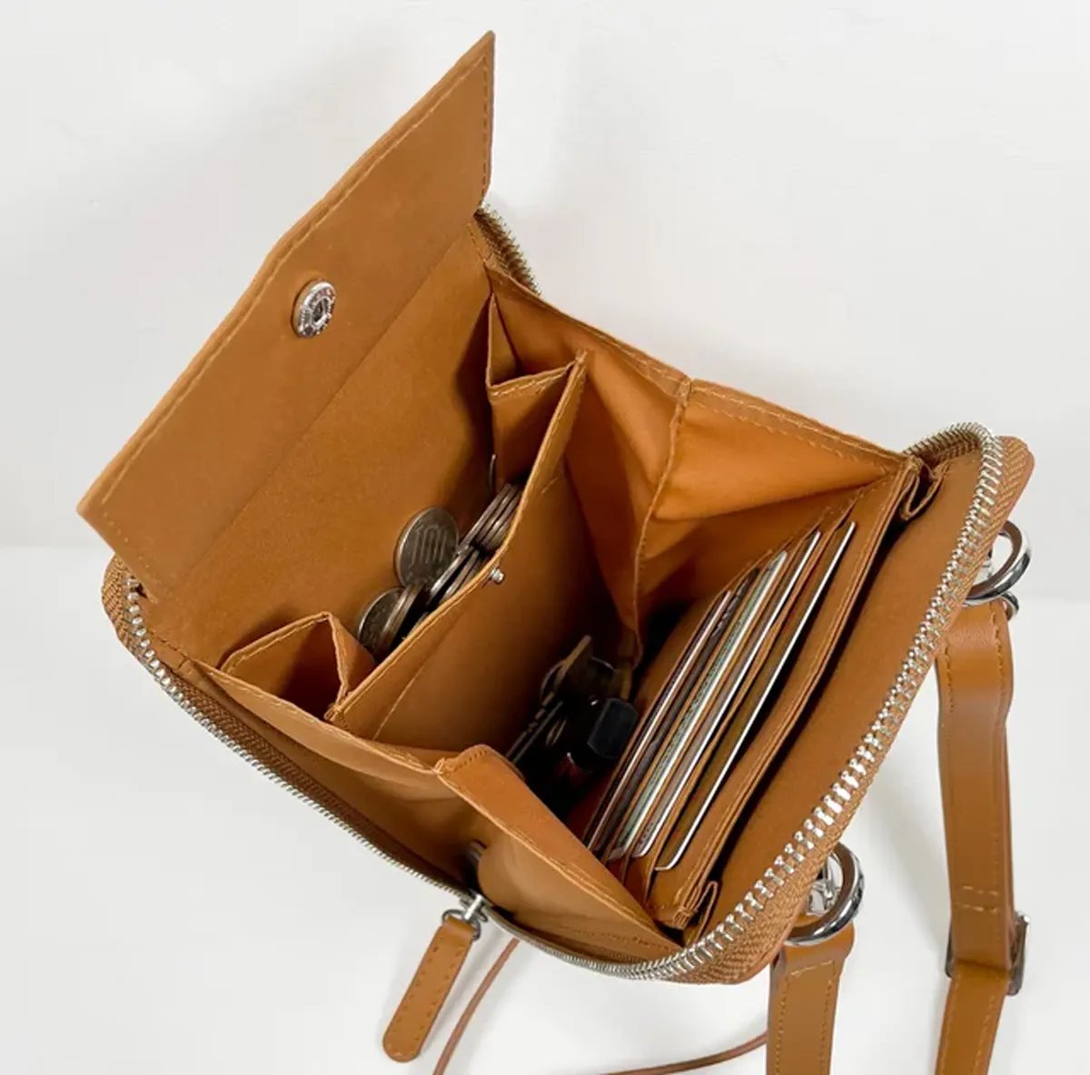 カード、紙幣、コイン、キーなどバッグを開けたらひと目でわかる様にしました。