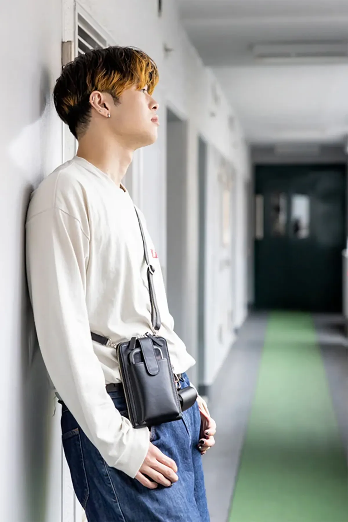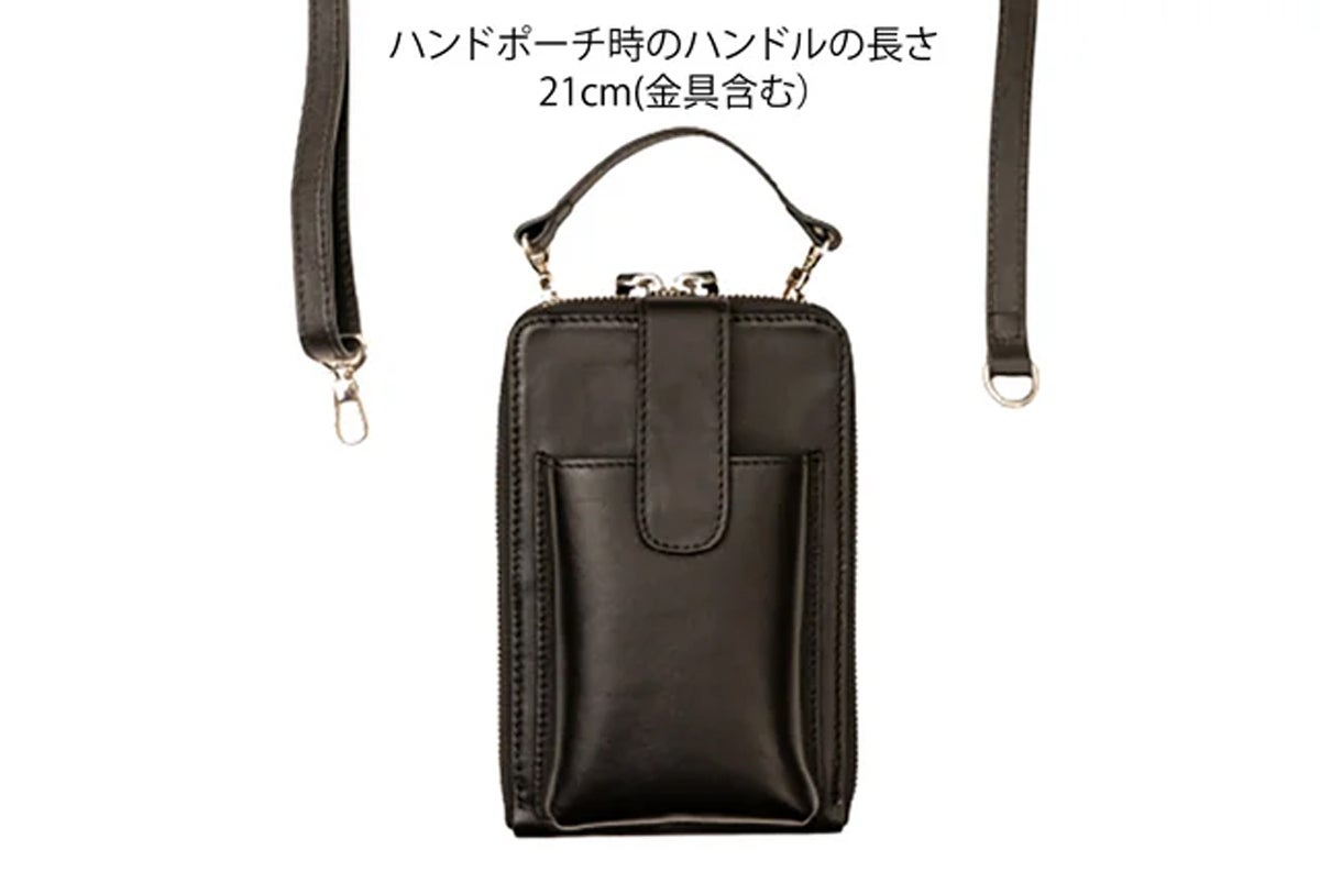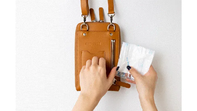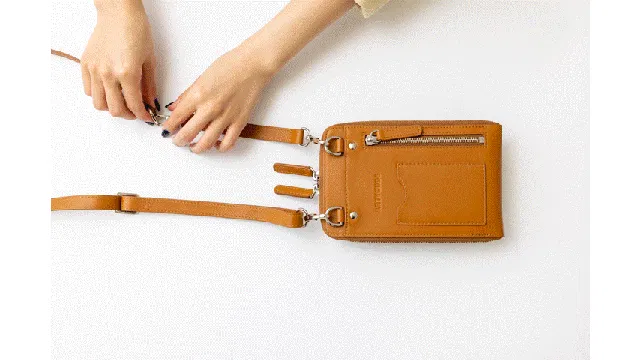 2.ショルダーベルトを外してハンドポーチとして使用。簡単にベルトの付け替えができます。