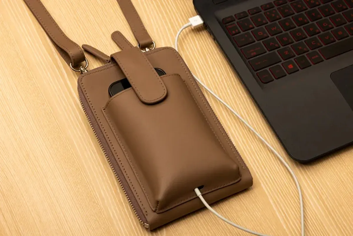 スマホをポーチに入れた状態で充電コードを差し込める「差し込み口」装備