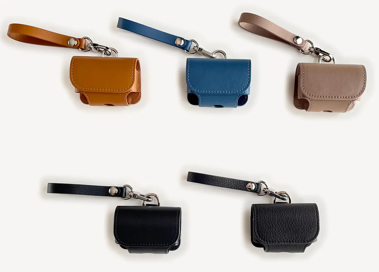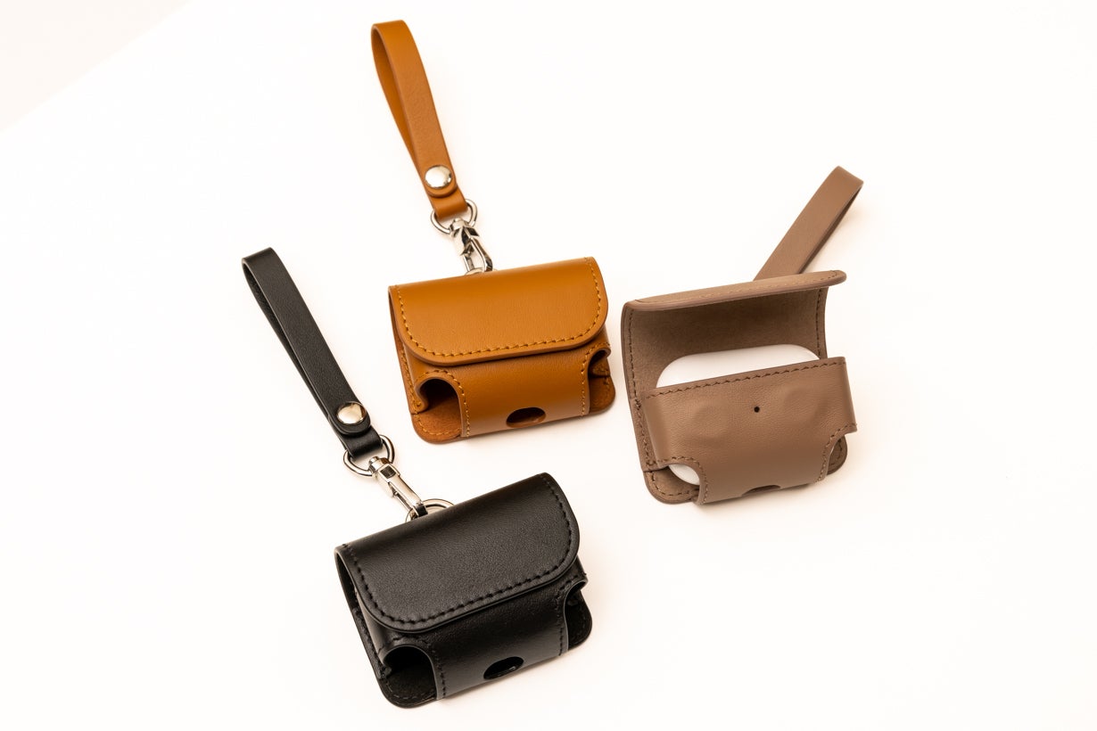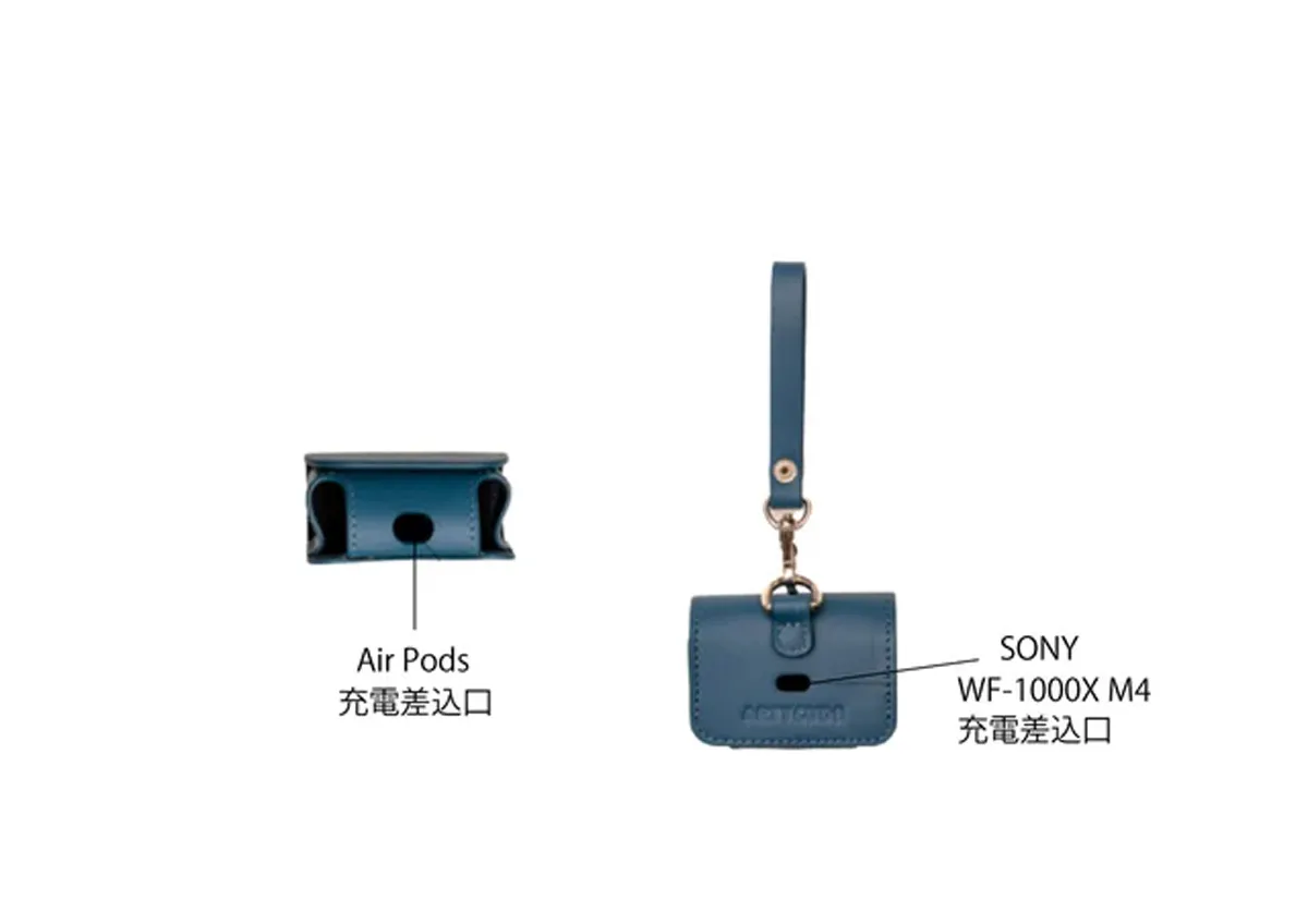 また別にイヤホンケースも製作し、Air Pods(第1世代~第3世代,Pro)、SONY (WF-1000XM4)にも対応できるサイズになっています。どちらもケースに入れたまま充電できる差し込み口を装備しています。