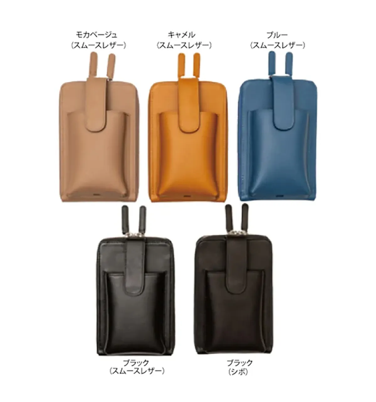 ※キャメル、ブルー、モカベージュは少し光沢のあるスムースレザーです!