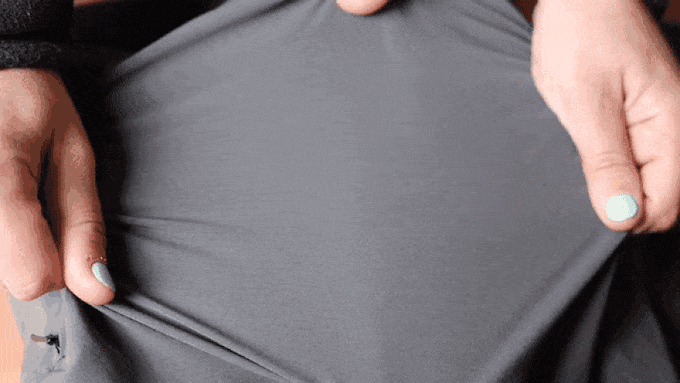 洗って干して、数分後には素早く乾いてシワもなくなります。 この伸縮性があり軽い生地は直ぐに乾くので、突然豪雨に見舞われたときも同様です。