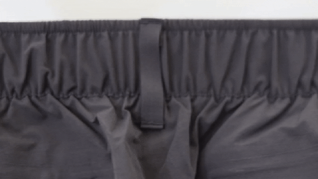 T800撚糸105gsmポリエステルを使用し、体の動きに合わせて影のように伸びるパンツに仕上げました。通常、この生地は横方向の2WAYストレッチですが、4方向全てに伸びるように作りました。更に横糸にグラフェンを使用することで、激しい動きにも耐えられる、グラフェンの特性を活かした生地に仕上げました。