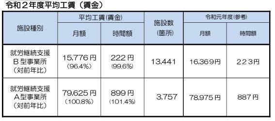 参照:令和2年度工賃(賃金)の実績について - 厚生労働省