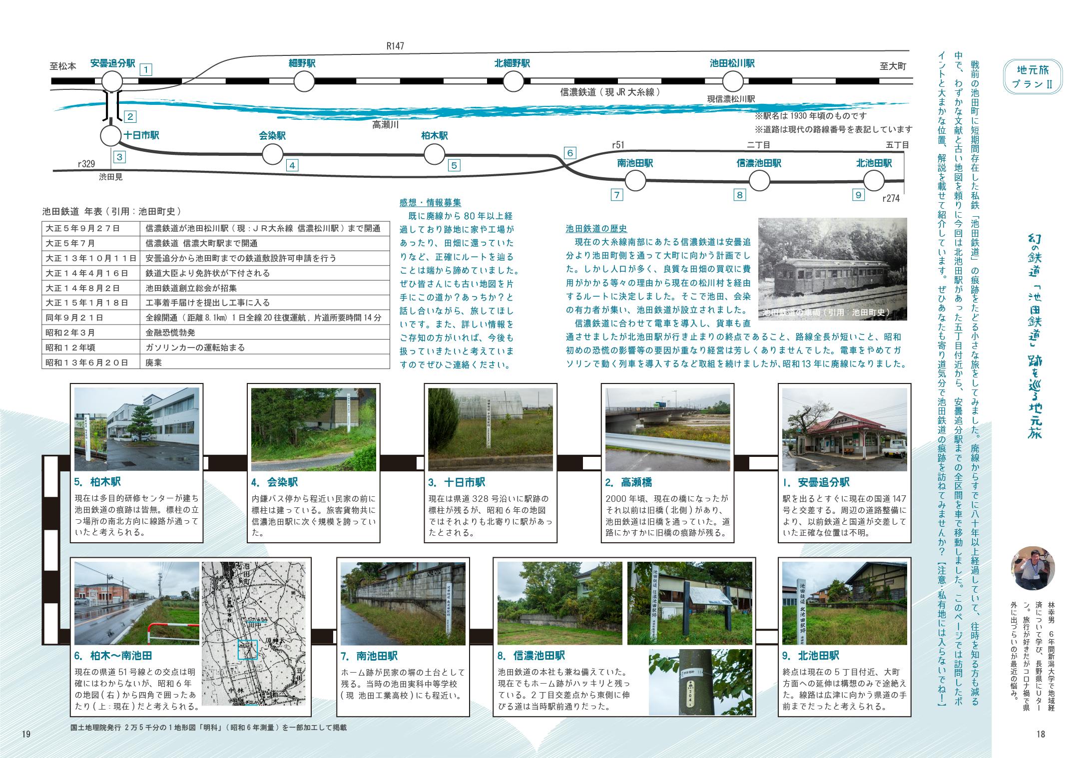 毎号、特集を組んで楽しみながら地域について学べる記事も掲載しています。この記事は、池田町に昔あった鉄道路線「池田鉄道」の名残を探す地元旅の紹介記事。新型コロナウイルスの流行で遠方に出られなくても、地域をまなざす角度を変えることで発見や驚きがあることを発信しました。