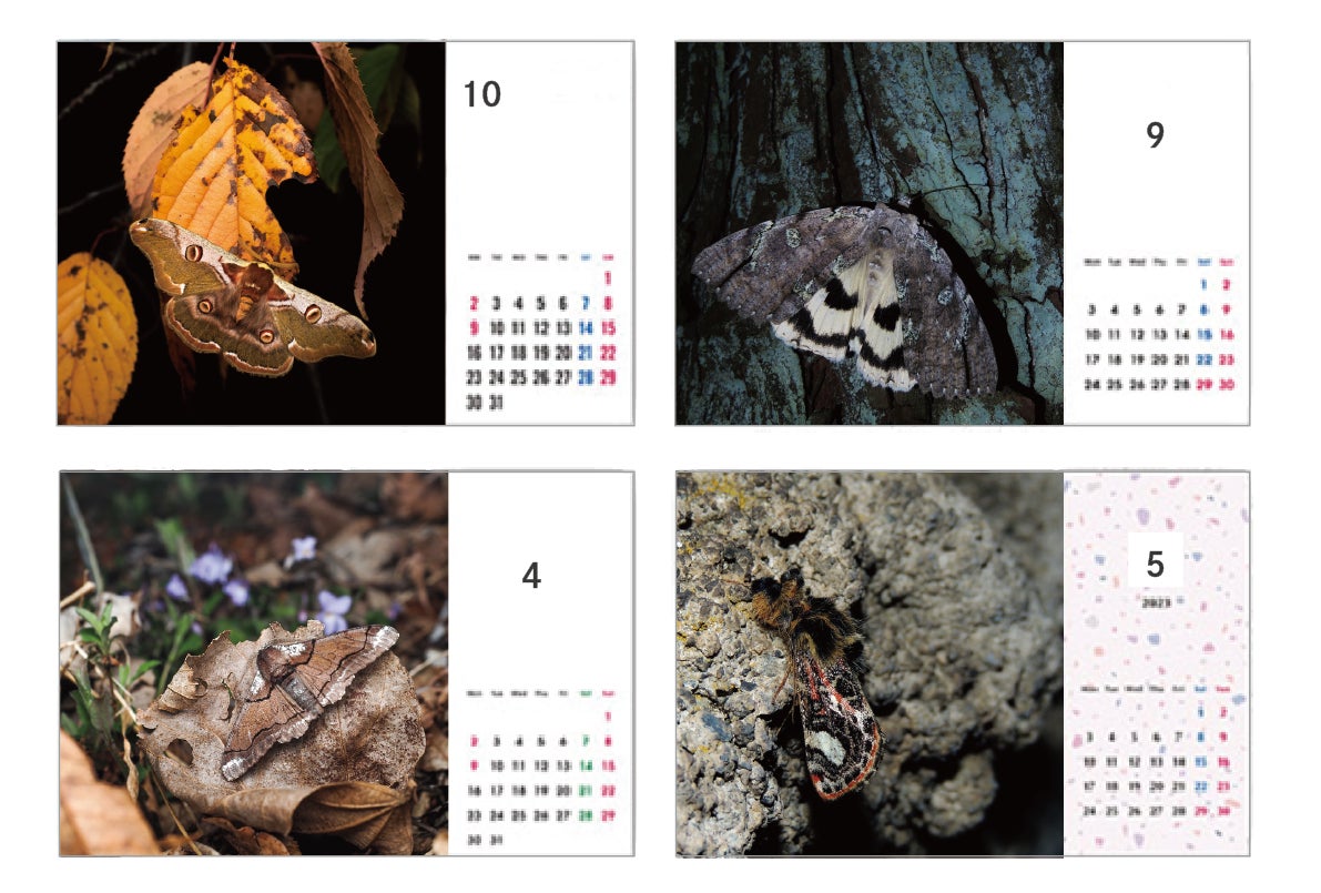 お礼のメッセージ+お名前掲載+『長野県のステキな蛾100』1冊+長野県の蛾の写真をつかったオリジナル卓上カレンダー