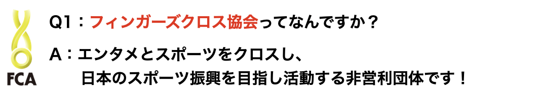 ”スポーツ”と”エンターテイメント”をクロスし、多くの「FUN=楽しい」とスポーツ の「FAN=ファン」を作り、健全で元気な”カラダづくり・ヒトづくり・マチづくり”を目指す非営利団体です