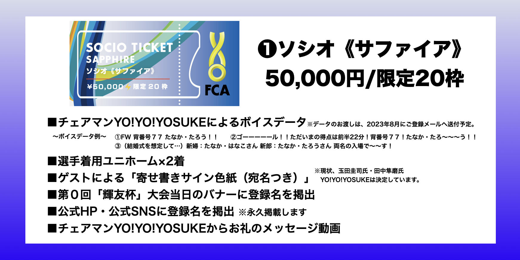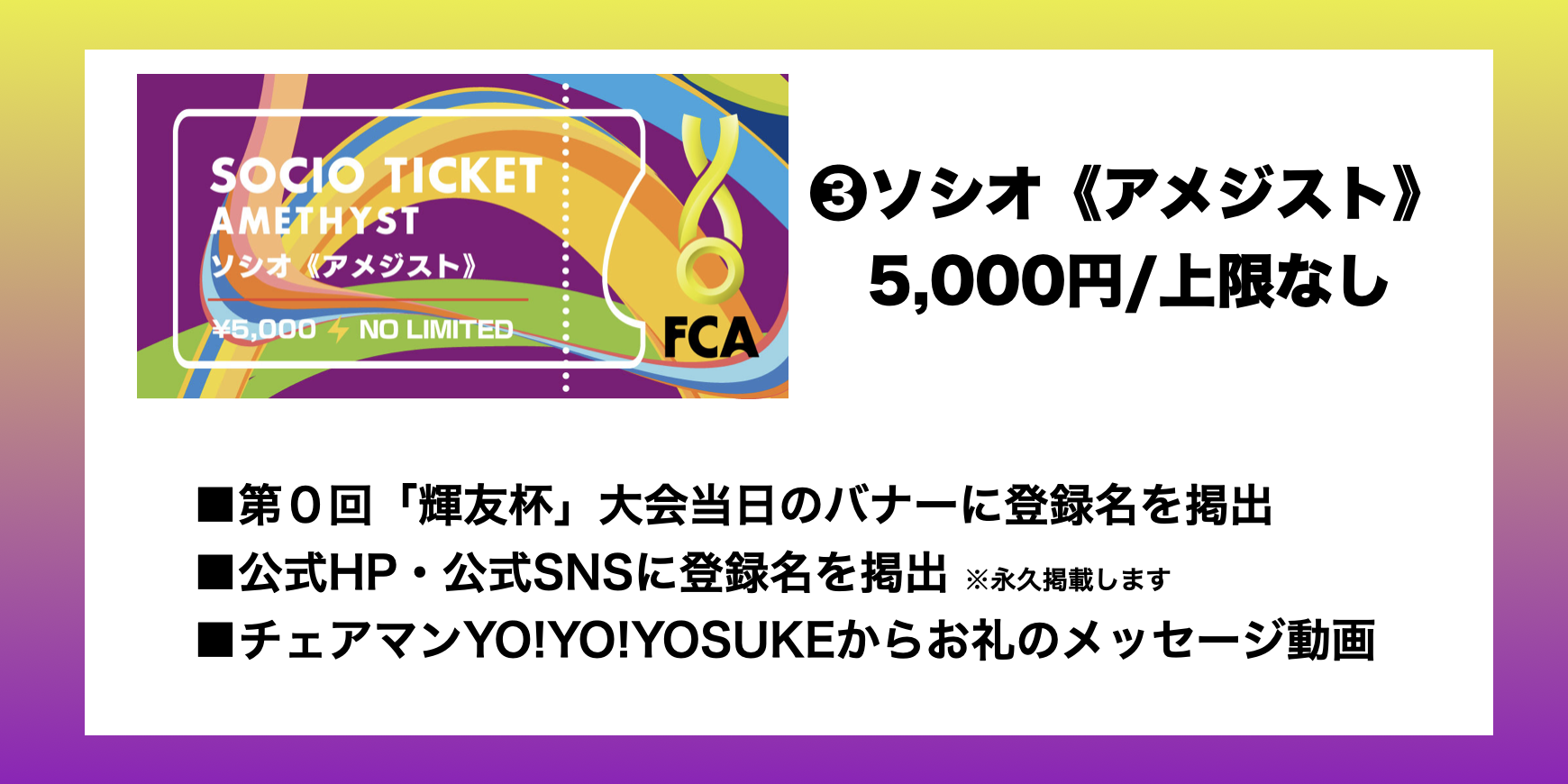 「ソシオ」とは、本協会の活動、チェアマンであるボクの想いに賛同いただける「年間賛助会員様」のことです。※本件の「ソシオ=年間賛助会員」の適用期間は、2024年3月末日までとなります。