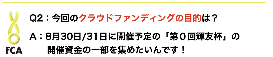 活動の第一歩目として、今年8月30日(水)・31日(木)に「第0回輝友杯」を開催することを決意しました。そこで今回、皆さんに「第0回輝友杯」の開催資金の一部をご支援いただきたいです!よろしくお願いします!