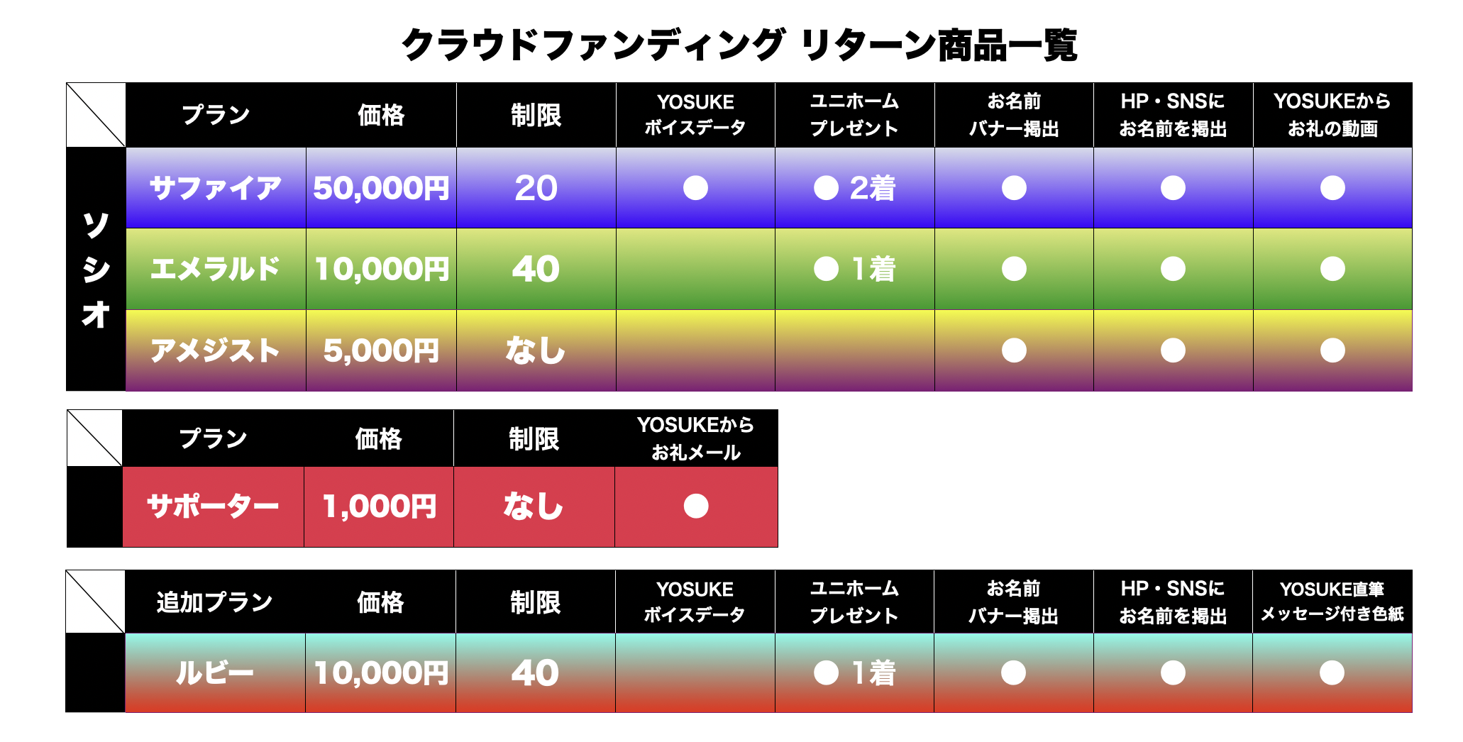 目標200%達成に向けて、新たなリターン商品「ソシオチケット《ルビー》」を追加いたしました。