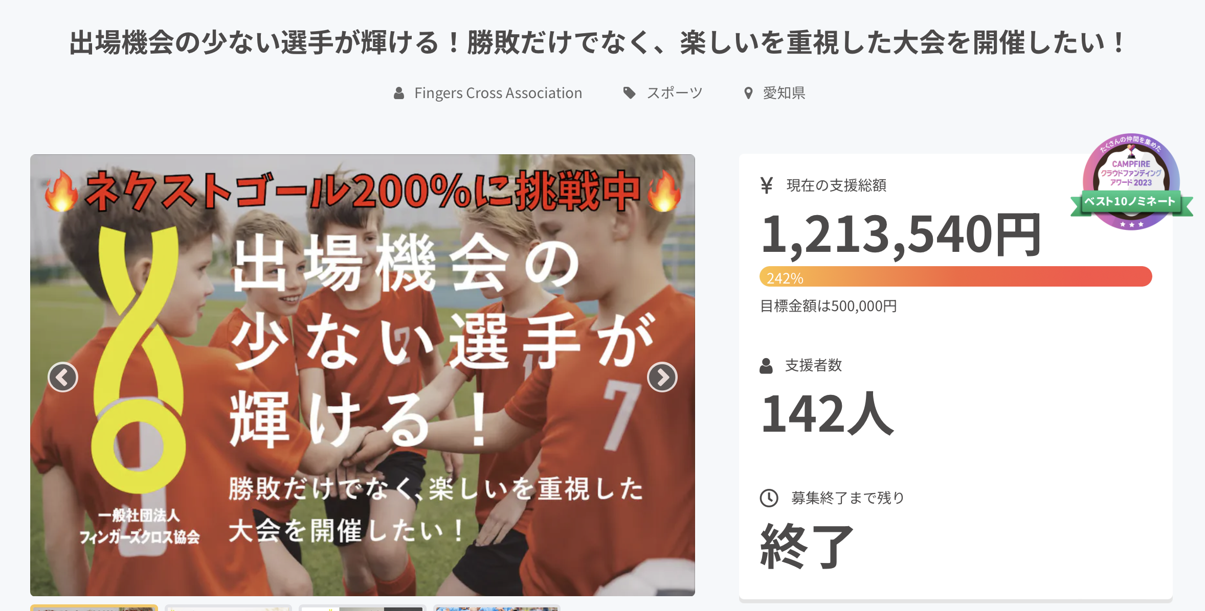 CAMPFIREクラウドファンディングアワード2023のノミネートされました!