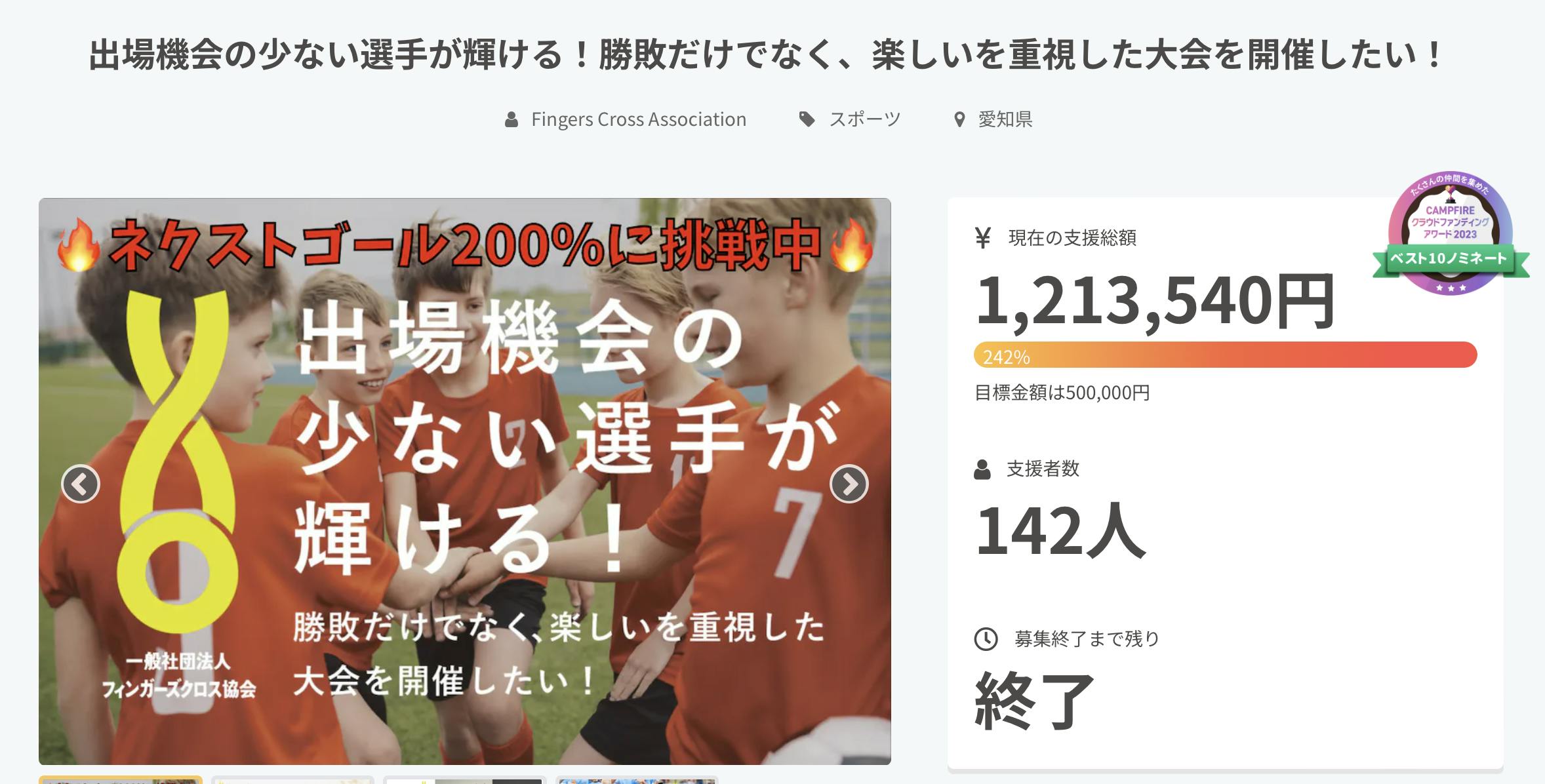 CAMPFIREクラウドファンディングアワード2023のノミネートされました!