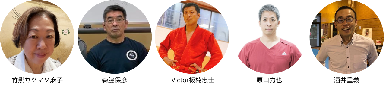 - 森脇保彦:柔道家(詳しくはこちらのwikiを)。元国士舘大学教授。モスクワオリンピック60㎏級代表(参加中止)、第12回世界柔道選手権大会60㎏級優勝、全日本柔道連盟強化コーチ(1883年~1996年 )。バランスの崩し合いをする柔道には転倒を回避する力を育む特長があることに注目して、高齢者の転倒予防を目的とした「柔道けんこう体操」を考案、相手を投げないため高齢者や初心者が安全に楽しく取り組むことができます。講師として「柔道けんこう体操」のワークショップなどができます。お気軽にご相談ください。