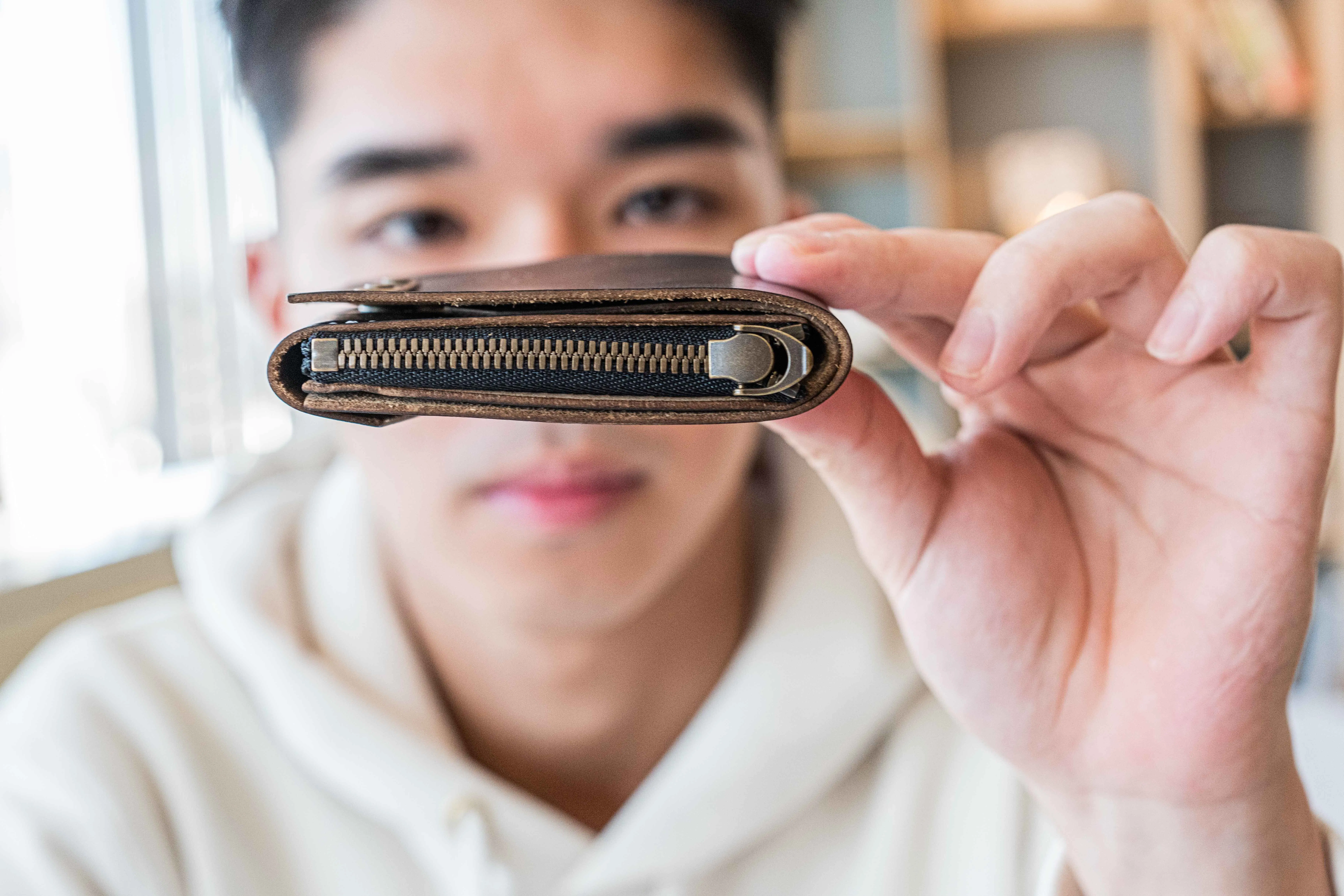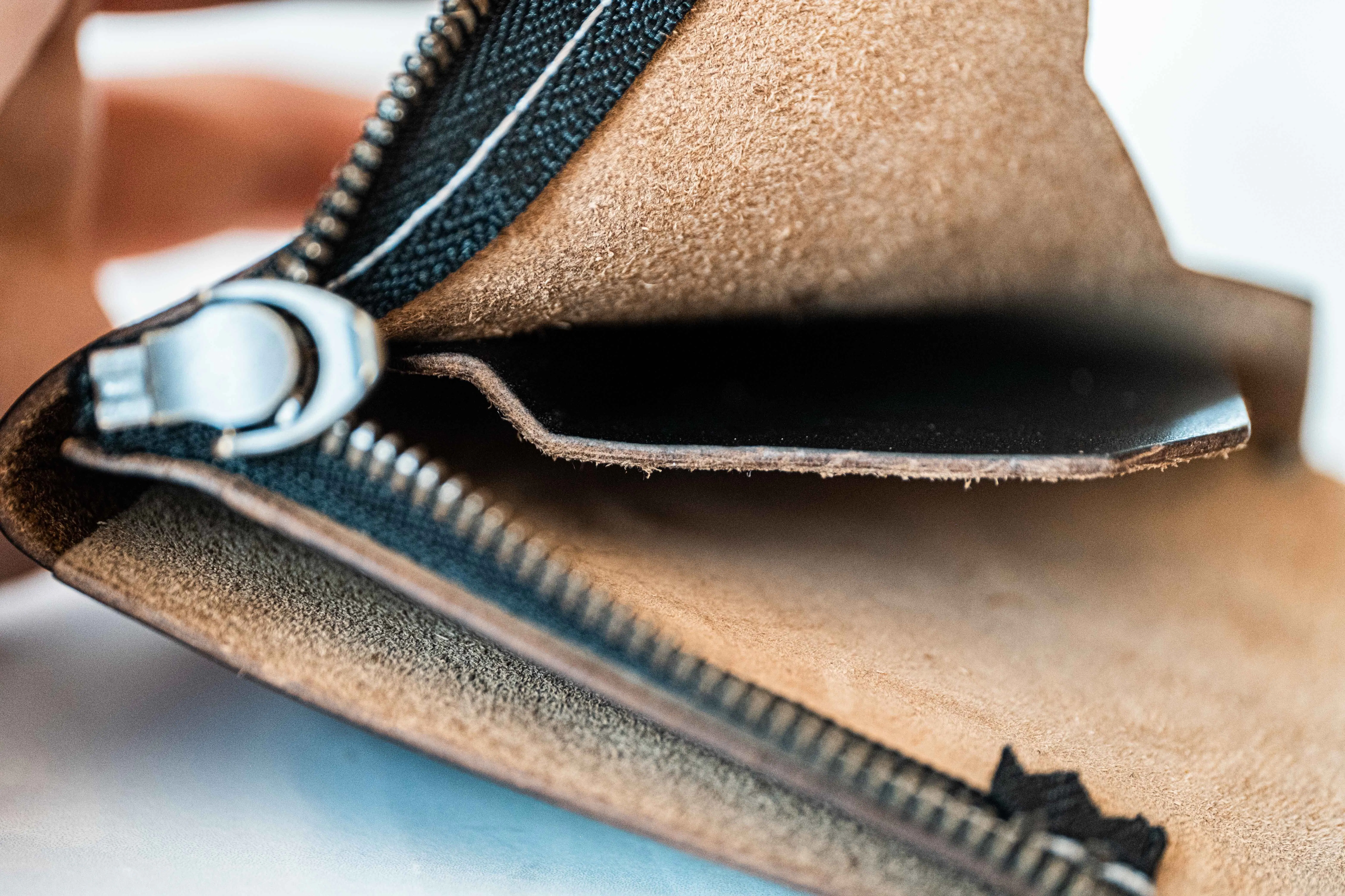 フラップを開かずとも目当てのカードがすぐ取り出せて、スマートな会計が可能です。ファスナーを閉じればカードを落とす心配がないのも利点です。