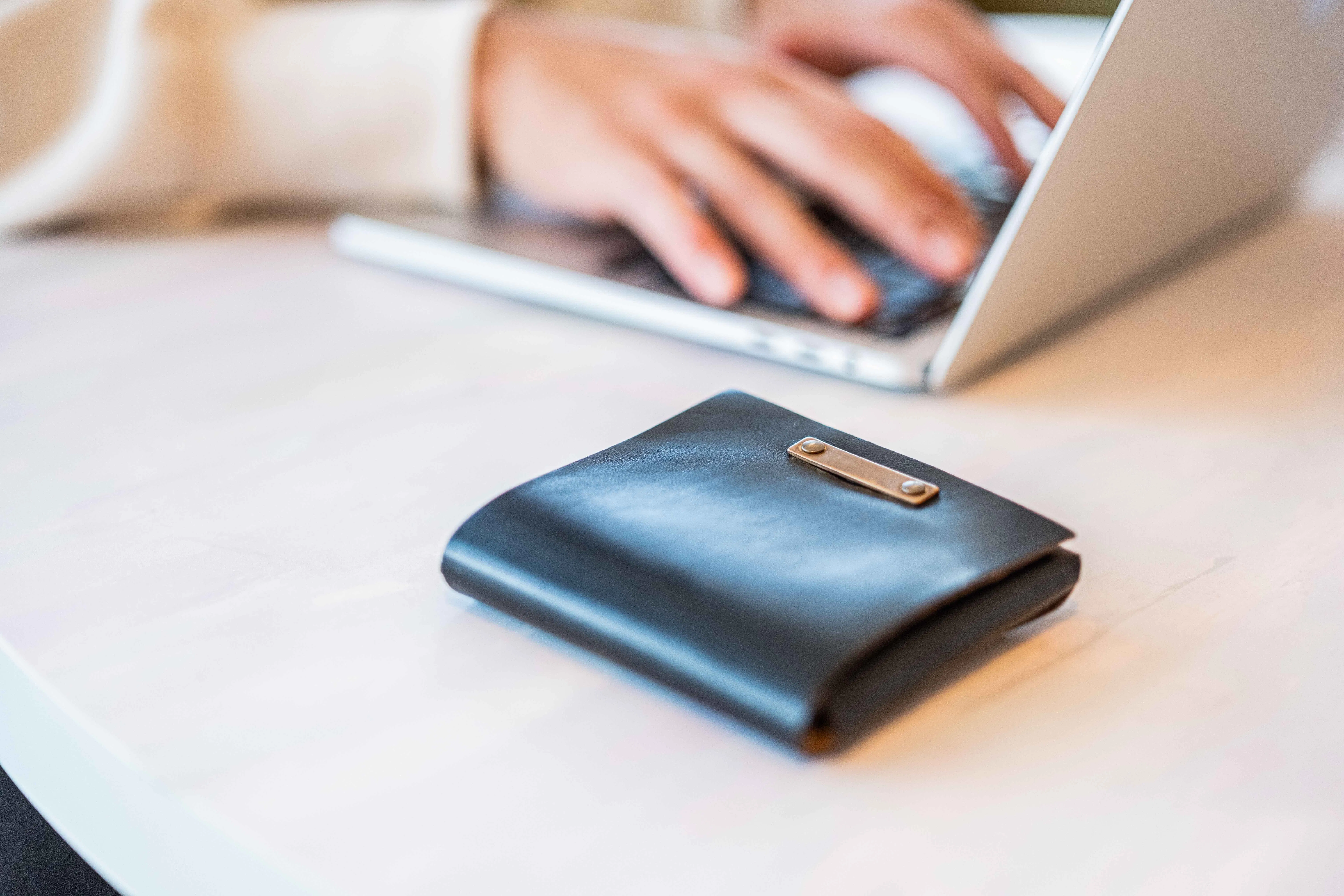 サブフラップは指がかかりやすく、ボタン周りの革に負担が少ない形状。ほどよい厚みのおかげで、コインを手前に出すときの受け皿としても機能します。