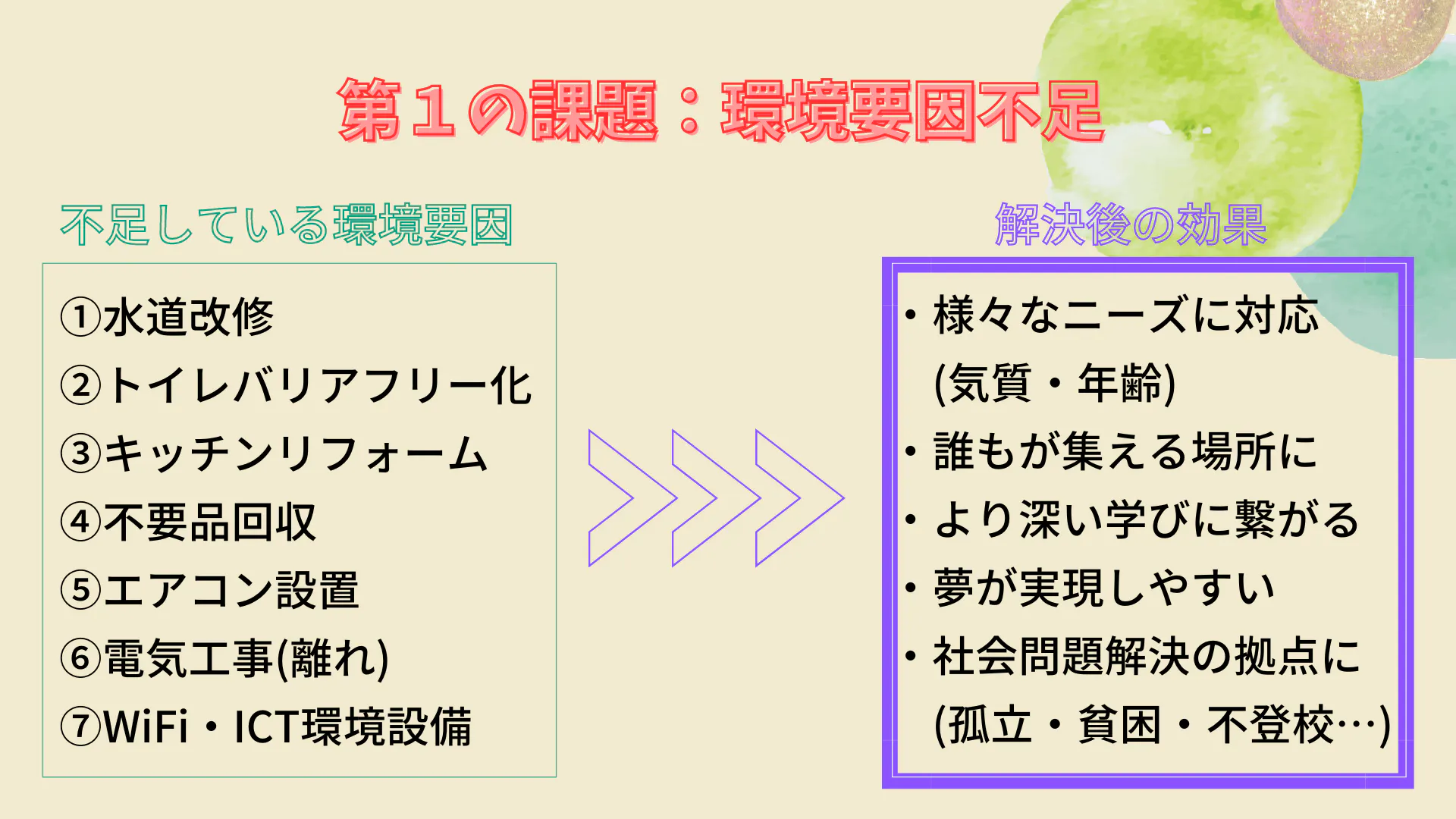 今回の水道改修プロジェクトは、不登校支援に留まらないあらゆる社会課題に取り組む活動拠点への第一歩です。