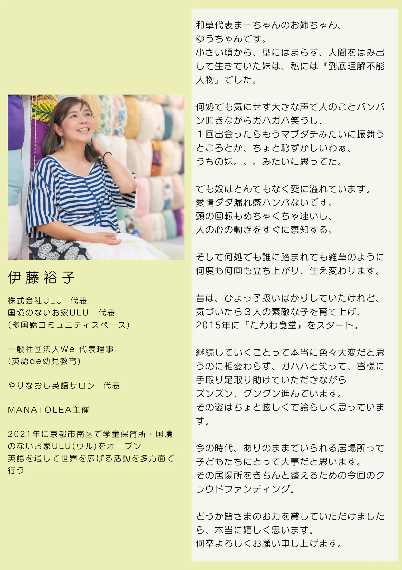 誰もが安心して集える居場所作りにどうか皆様のお力を貸してください。