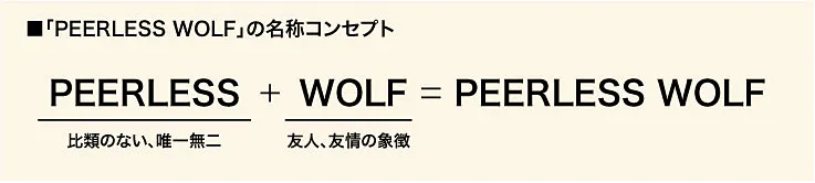 ネーミングの「PEERLESS WOLF」のコンセプトは、「常に群れで行動し、仲間同士助け合って生涯を過ごす唯一無二の力強さ」を意味しています。