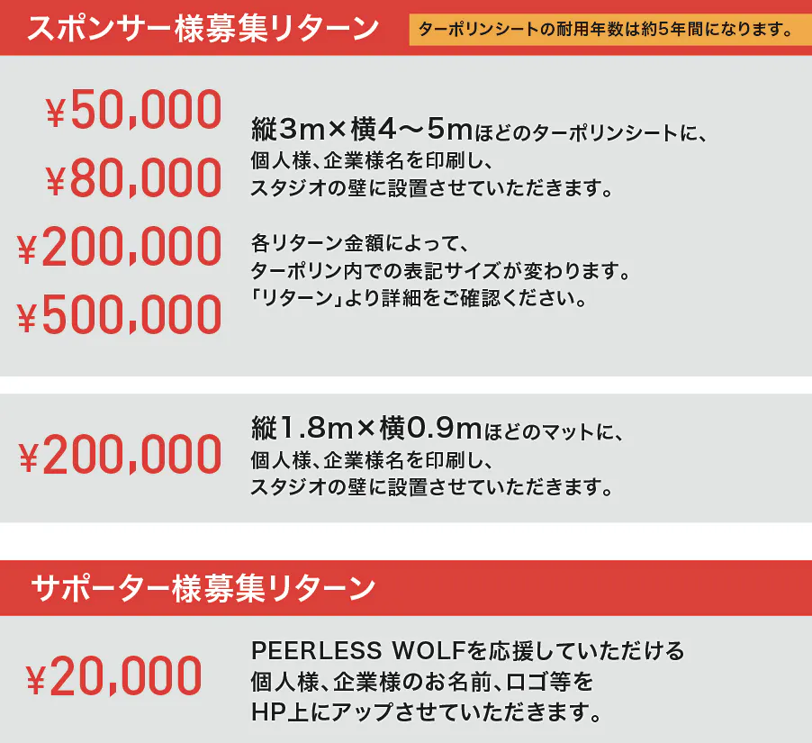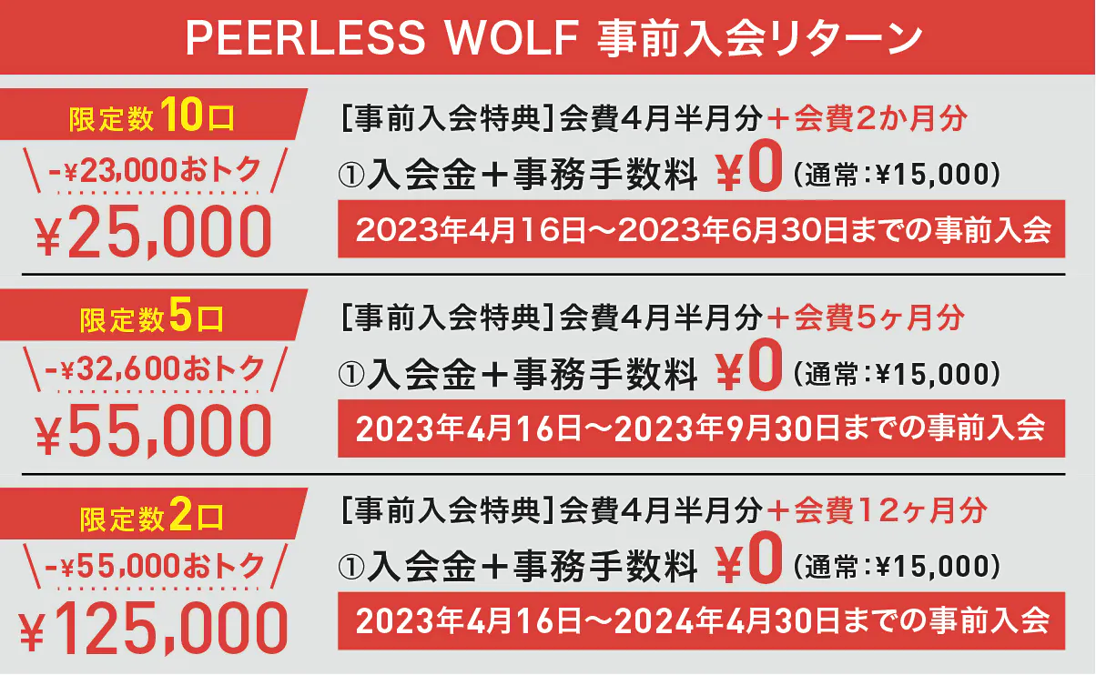 「PEERLESS WOLF」がみなさまの人生の財産になれるよう、共に成長していける運営を目指して、少しでもお力をいただければ幸いです。