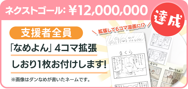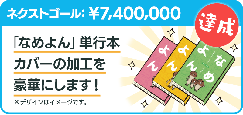 「なめよん」シリーズ新刊と復刊をお届けすることはもちろんですが、なめこを取り巻くすべての人が同じ瞬間を共有できる、それだけでもクラウドファンディングプロジェクトを開催する価値があるのだと思います。