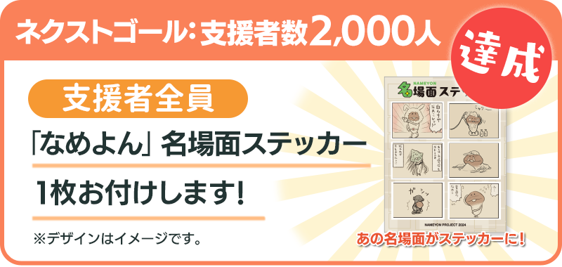 「なめよん③巻」カバーイラストの特製ステッカーを支援者全員にプレゼントします。