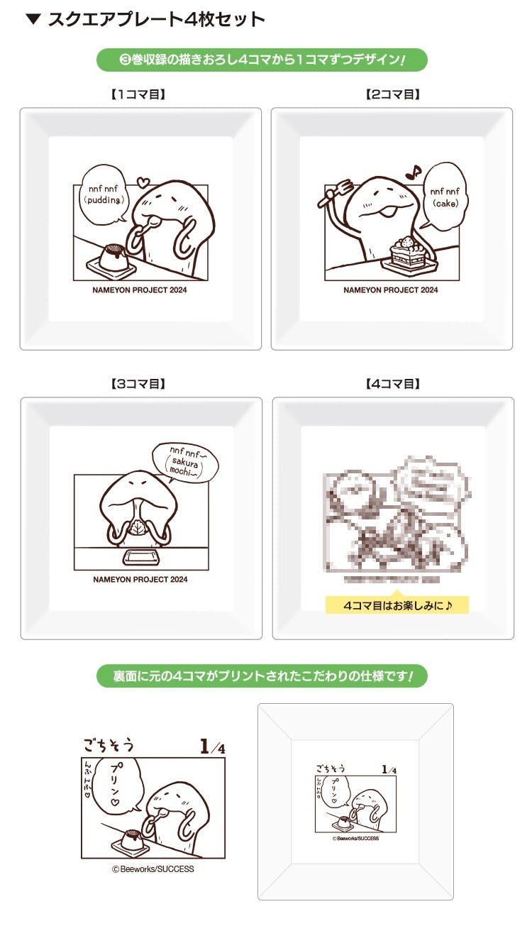 「なめよん③巻」収録予定の描き下ろし4コマを1コマずつデザインしたスクエアプレートです。