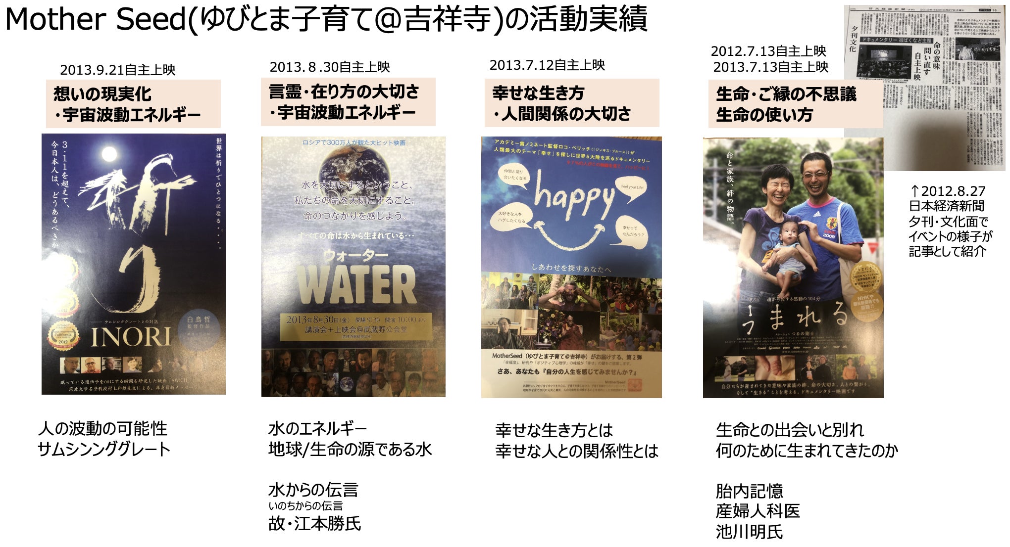 映画「うまれる」「HAPPY」「祈り」「Water」の自主上演会 @吉祥寺を実施