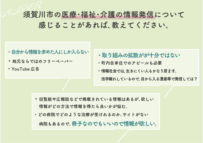地域住民の皆さまにご協力いただき、須賀川市で暮らす方々の声を聞き、課題の再認識をいたしました。