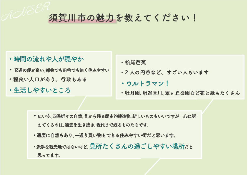 そのような社会を、ここ須賀川市から全国へ広めたいです。