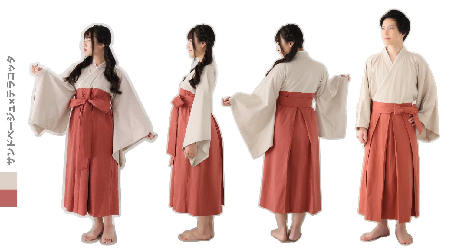 ※メンズは袴の腰位置が低いデザインとなっており、裾は若干長めの仕様です。