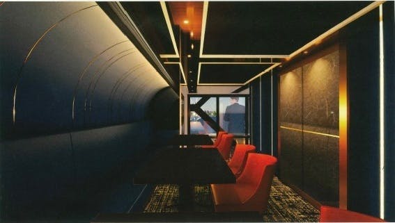 「Le HUBLOT」はフランス語で「舷窓」を意味する通り、客船の中にいるようなイメージで創りこみました。店内のバーカウンターを進むと、「舷窓」のように壁が曲線を描いている場所があり、さらに進むとルーフトップへ続くバルコニーへと出ます。まるで客船のデッキへ上がってきたような解放感があるつくりになっております。ルーフトップからは、古都京都の町並みや夜景を望むことができます。